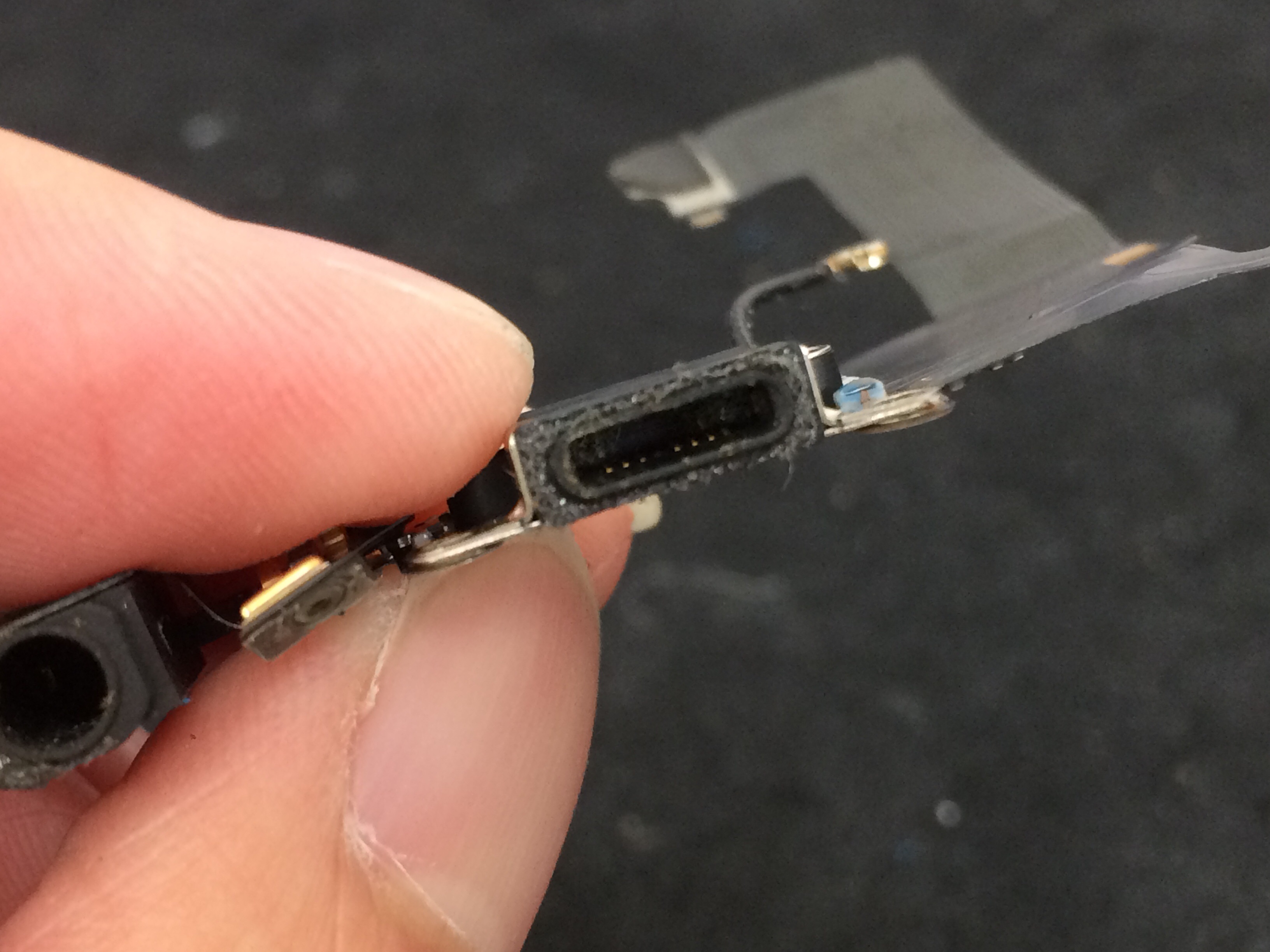 今回交換しているライトニングコネクターと呼ばれるパーツには充電口以外にもイヤホン差し込み口、電話の際に使用する通話用のマイクが付いておりますのでいずれかの故障もこちらのパーツ交換で直ります。