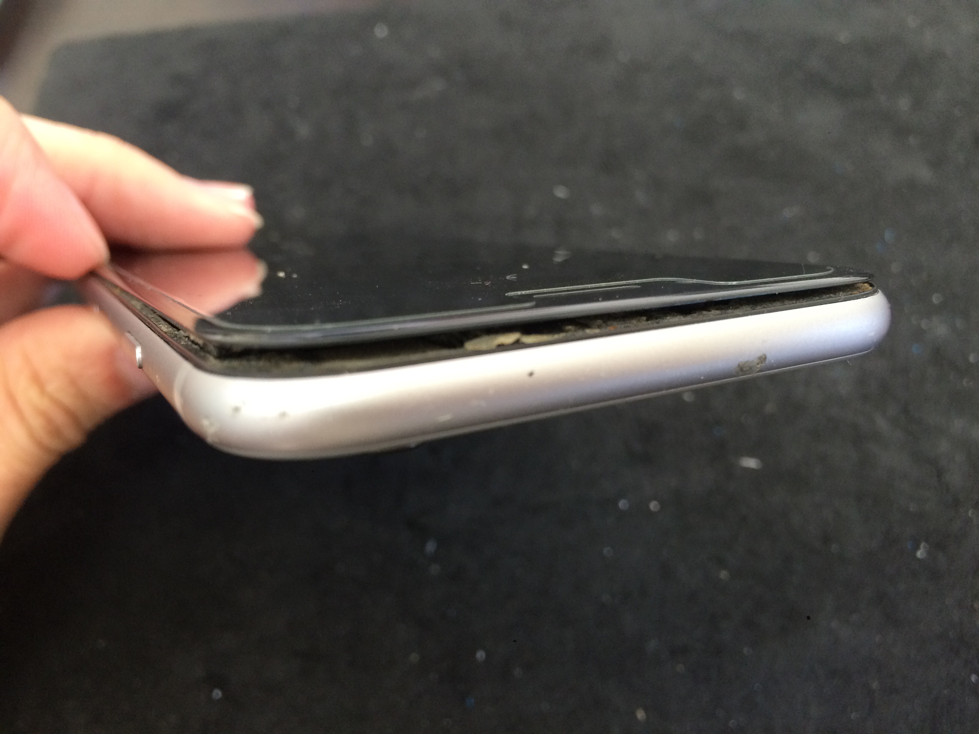 他店で一度ガラス割れを修理されたようですが画面上部のガラスが浮いてきたそうです。