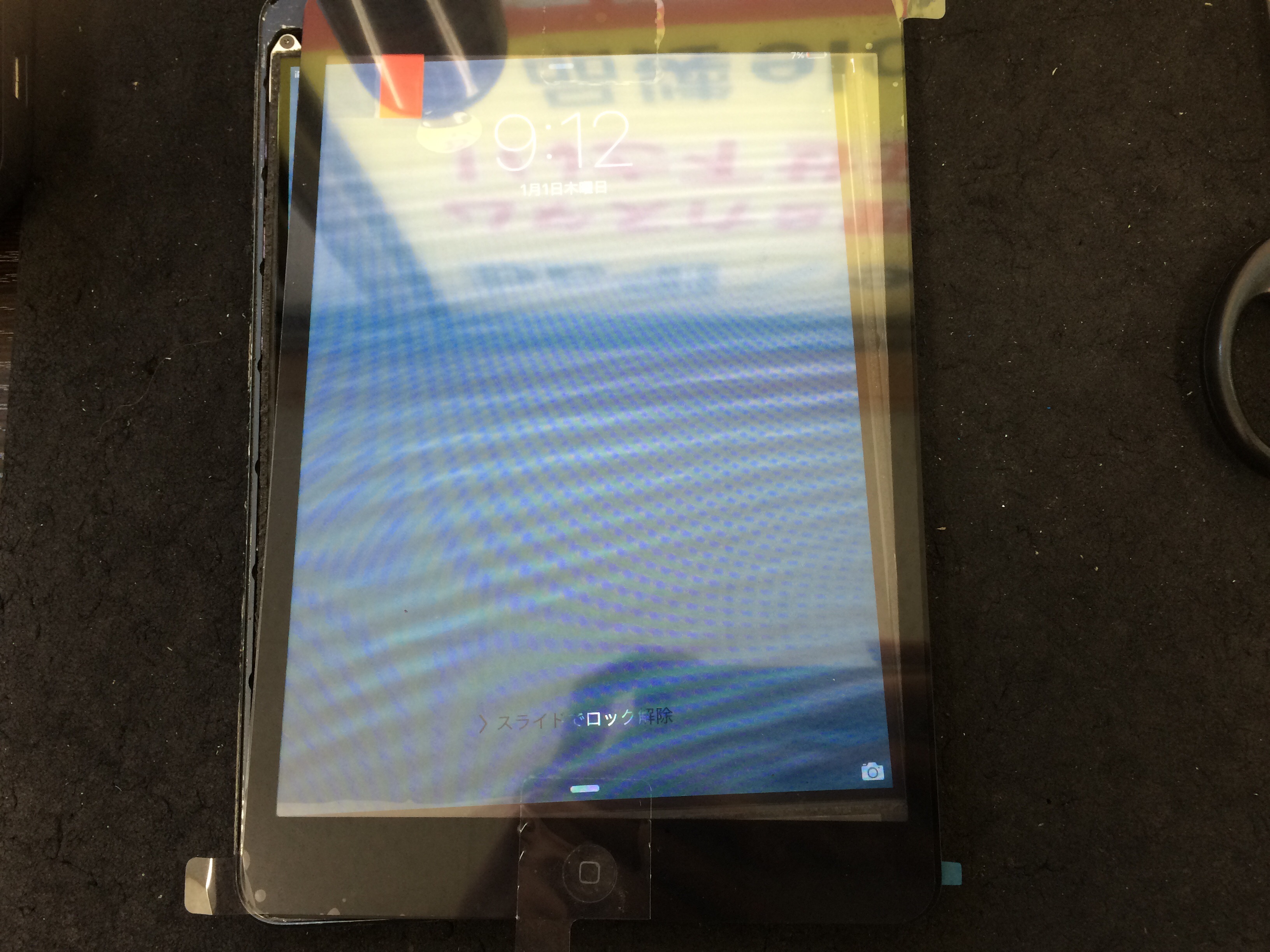 iPad miniの液晶パネルは非常に薄い作りの為慎重に作業しないと液晶も割ってしまうことになります。