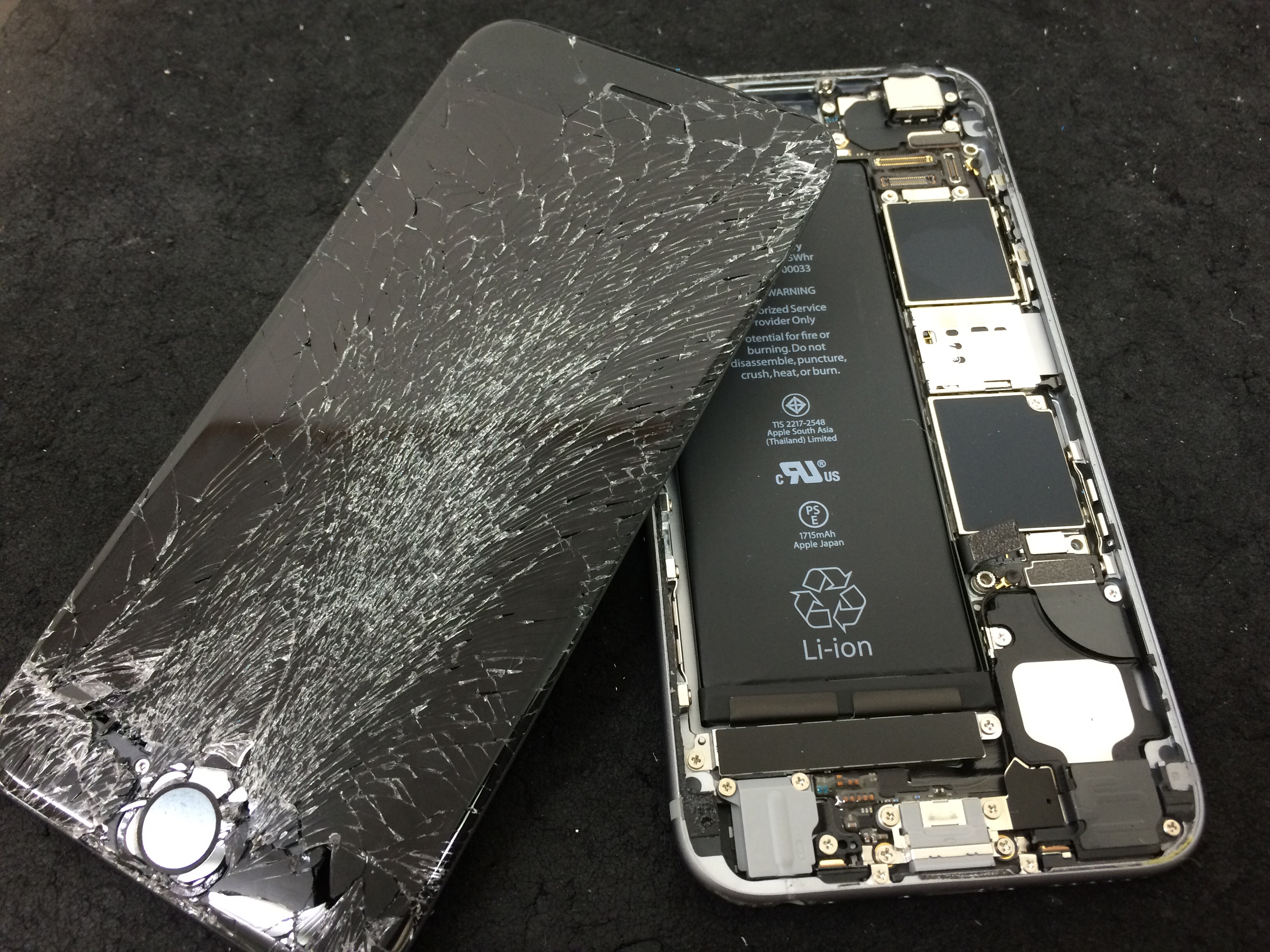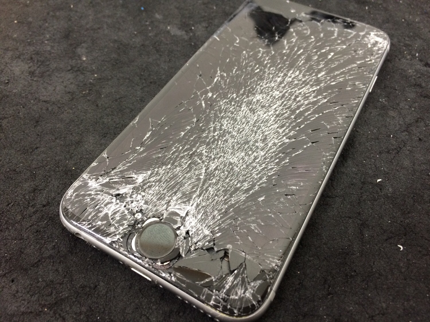 階段からiPhoneを落とされてしまったようで画面が激しく損傷、ホームボタンがグラグラしている状態でご来店です。
