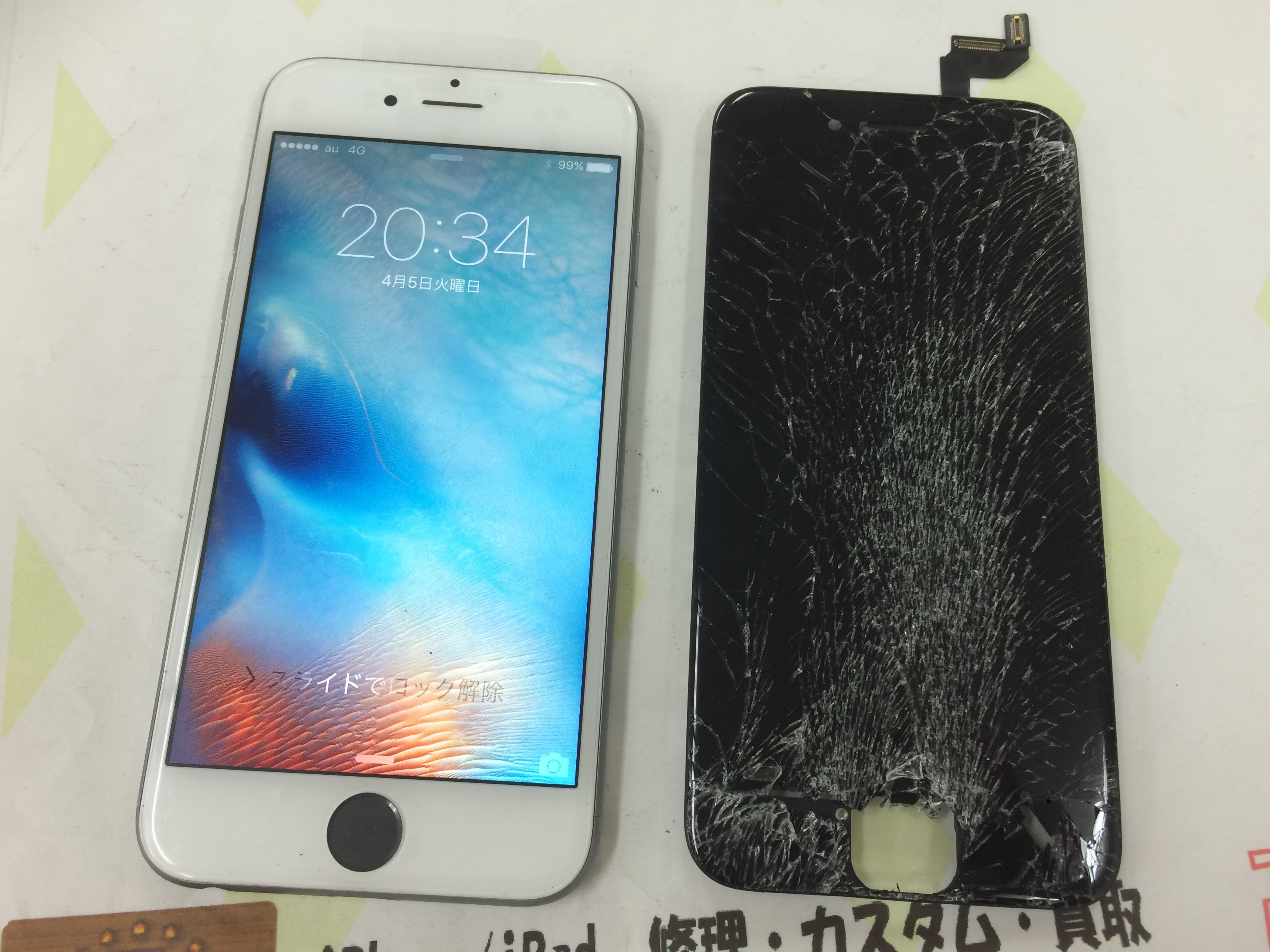 今回は白色の画面にて修理させて頂きました。