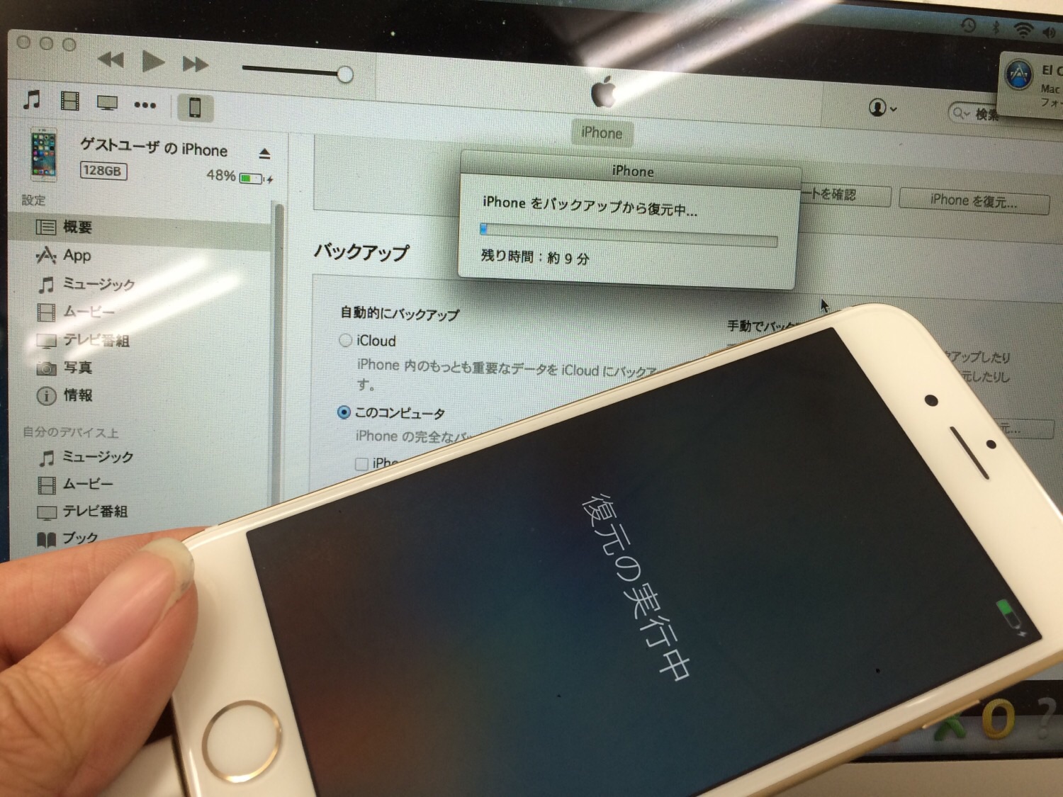 今回は契約から既に2年過ぎているため新しい機種に機種変更されるとの事で修理の間に機種変更へ行かれ、iPhone6sを手に入れられておりました。