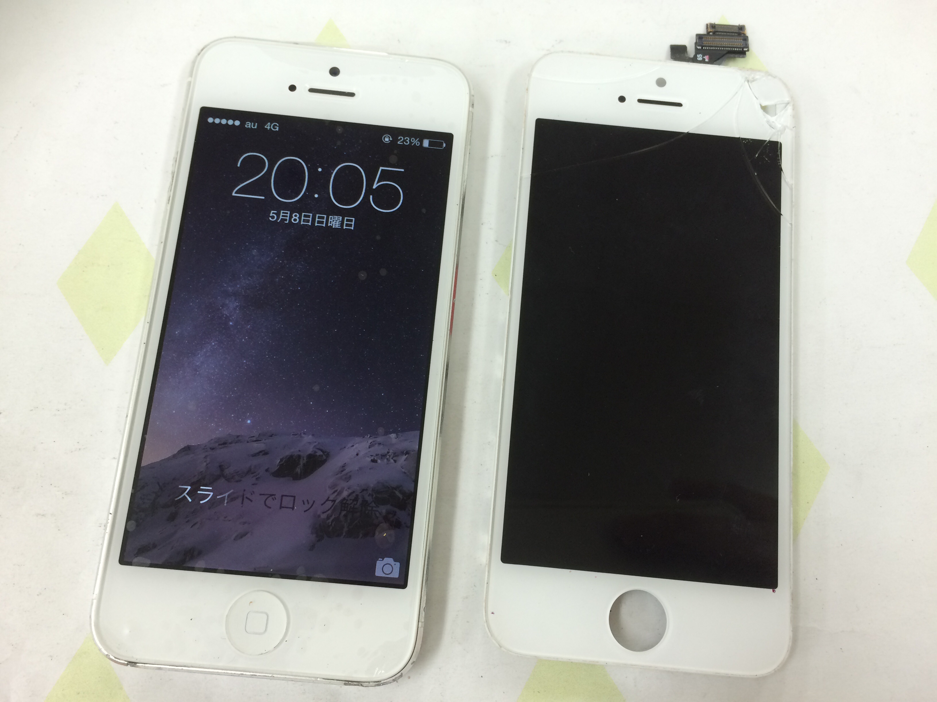 iPhone5 白色 ガラス割れ&タッチ操作不良修理 ¥13,800