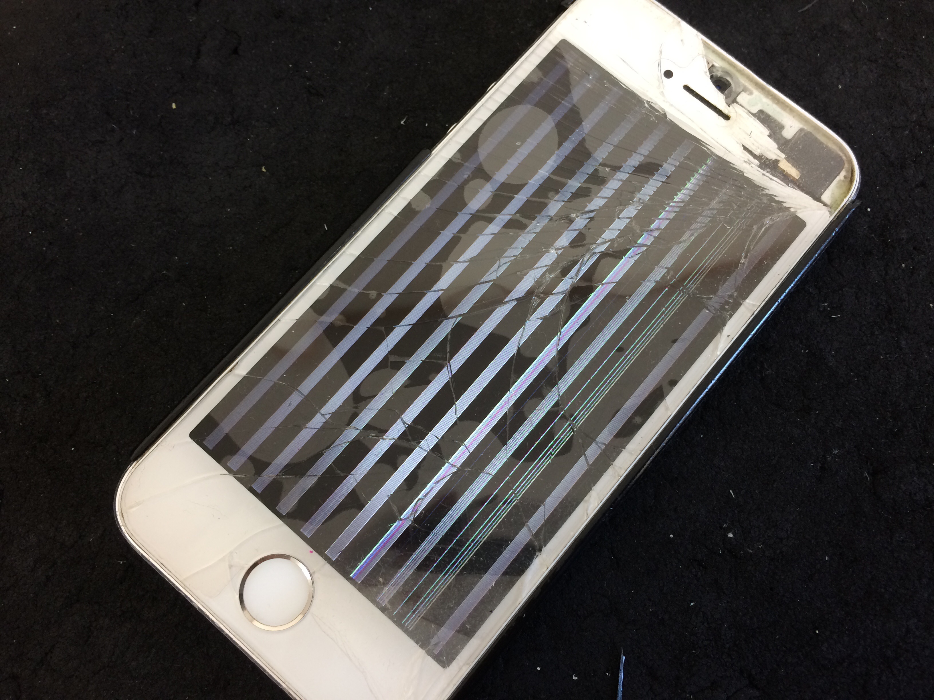 画面が激しく割れたまま使用されていたようですが再度の落下により液晶表示がおかしくなりご来店です。