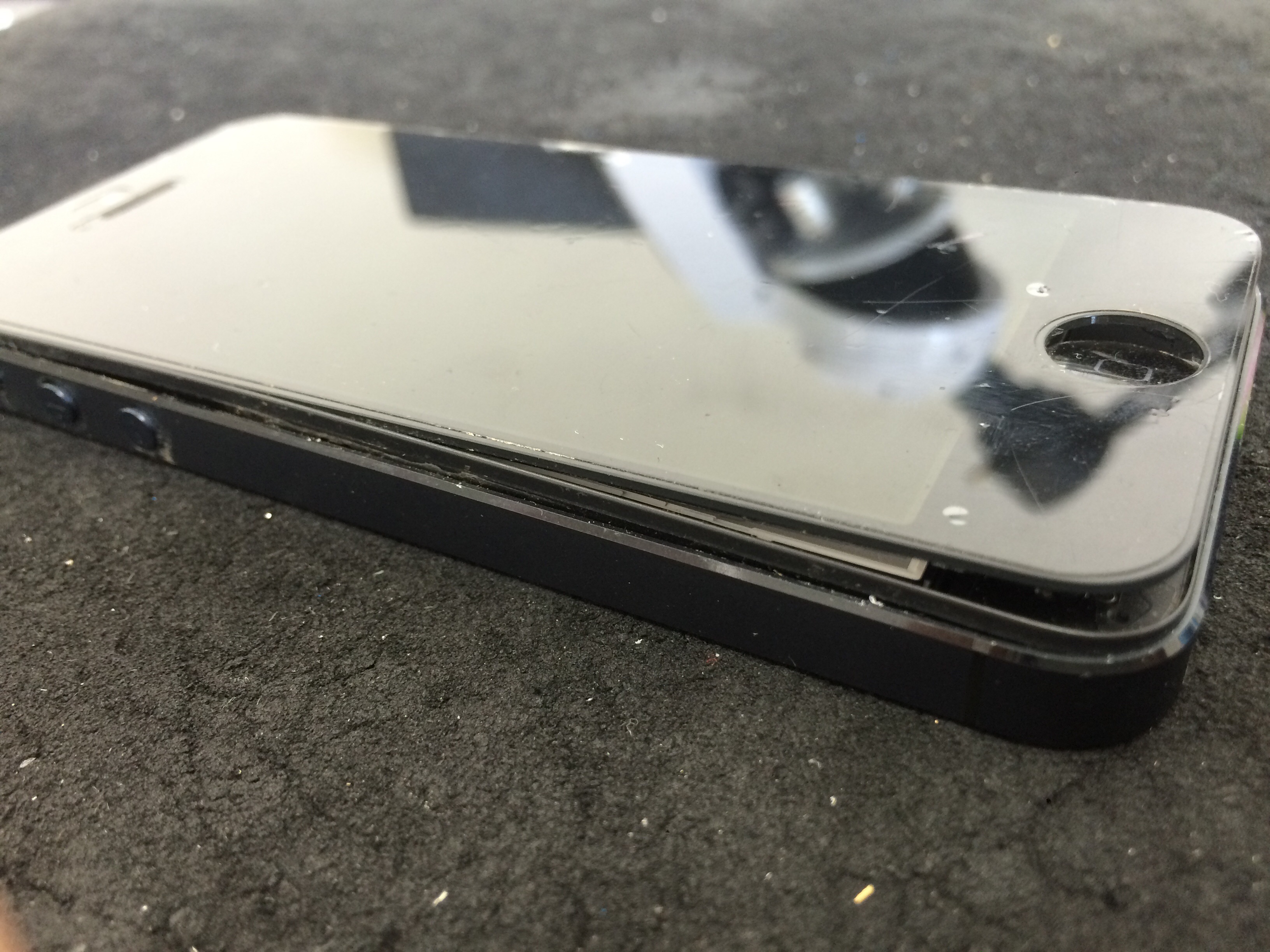 完全にバッテリーが膨らんでしまい画面のガラスが浮いている状態でした。