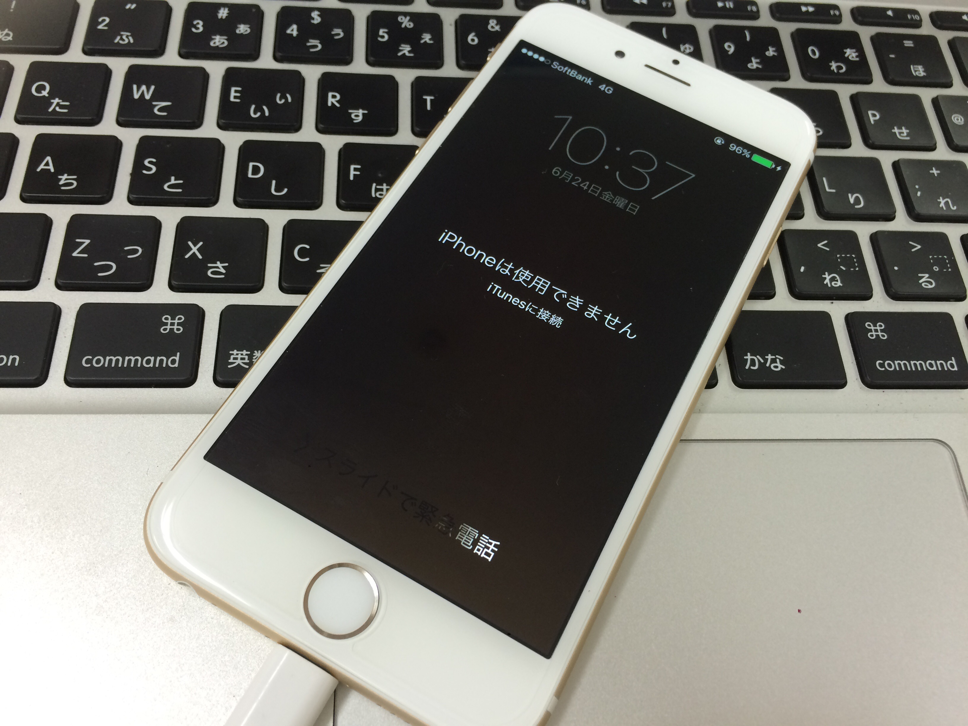 パスコードを複数回間違えられた為、画面には「このiPhoneは使用できません。iTunesに接続」と表示されています。