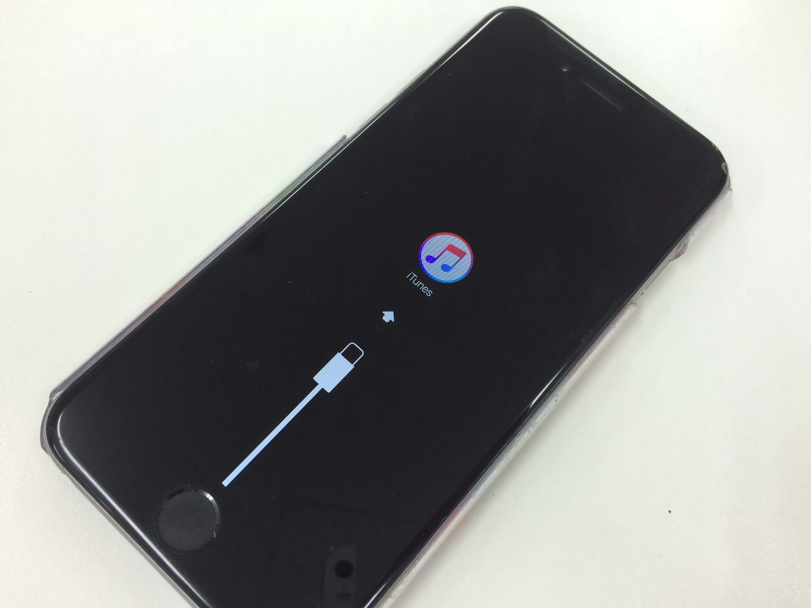 OSのアップデート中に失敗してしまったようで画面にiTunesに接続のマークが表示されるリカバリーモードになってしまいご来店です。