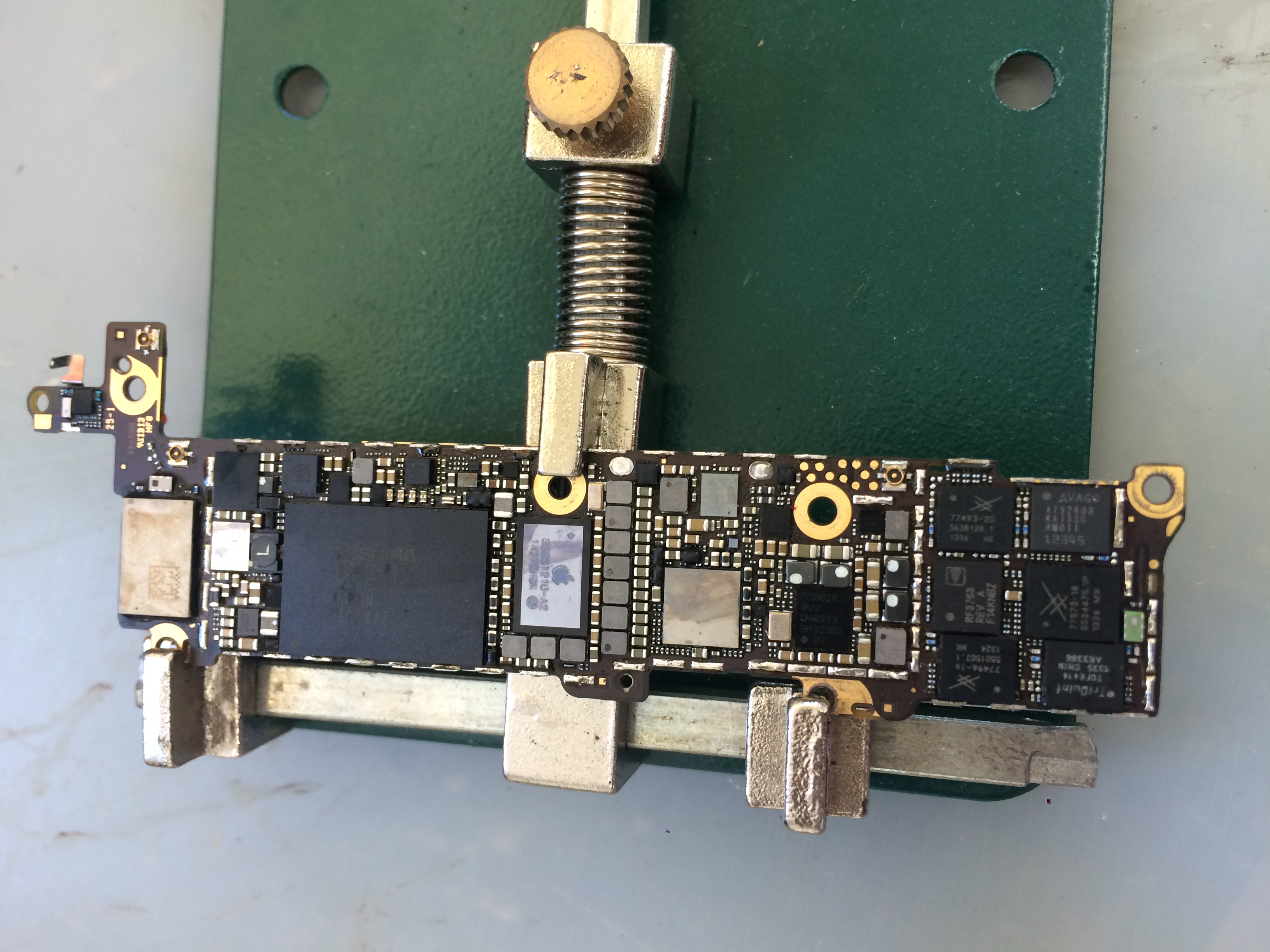 受付時にケーブルの差し込み口のドックコネクターを交換しても直らず基板上のICチップが損傷しておりました。