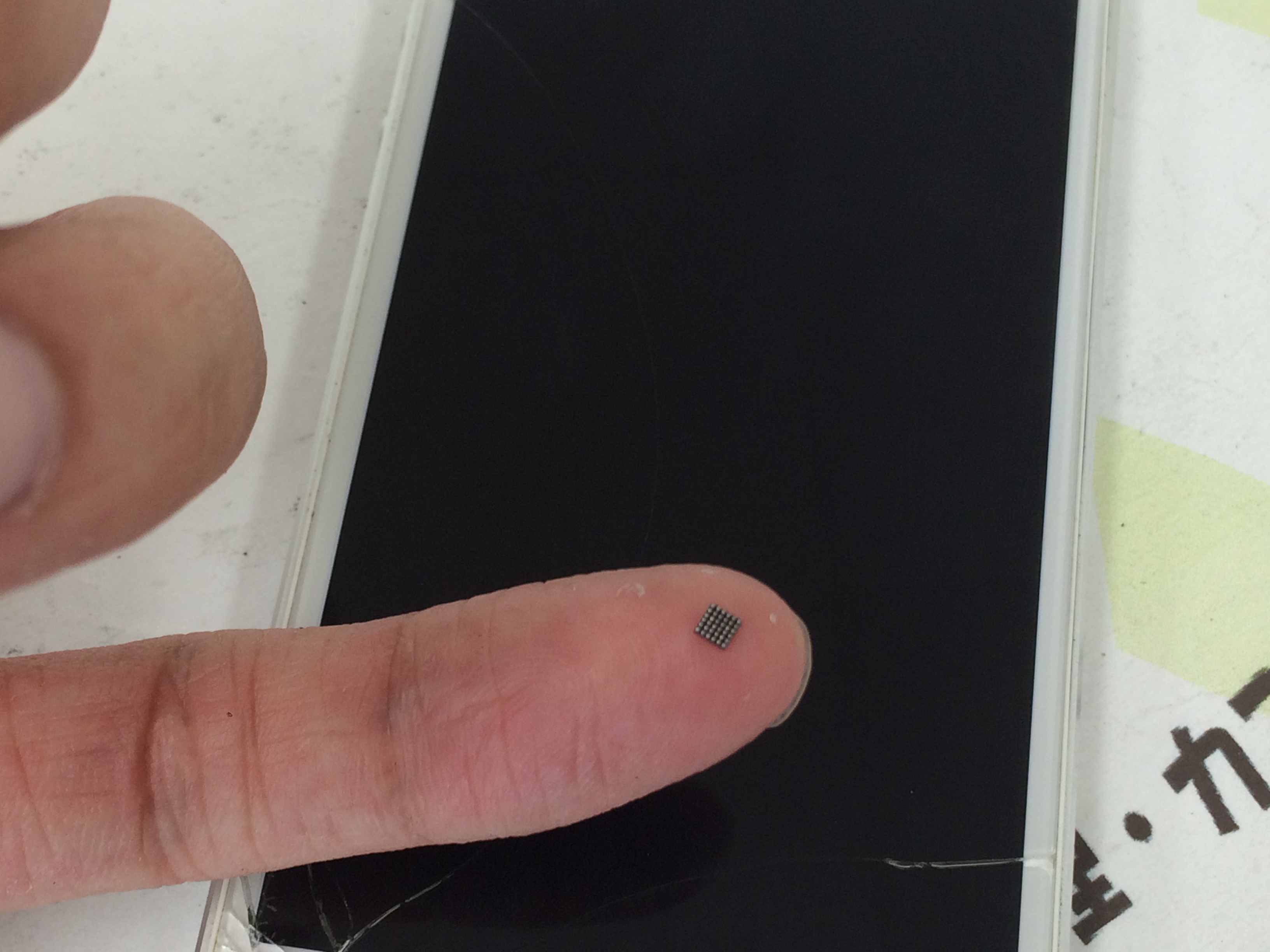 今回交換したICチップは小指に乗せるとこのサイズのICです。