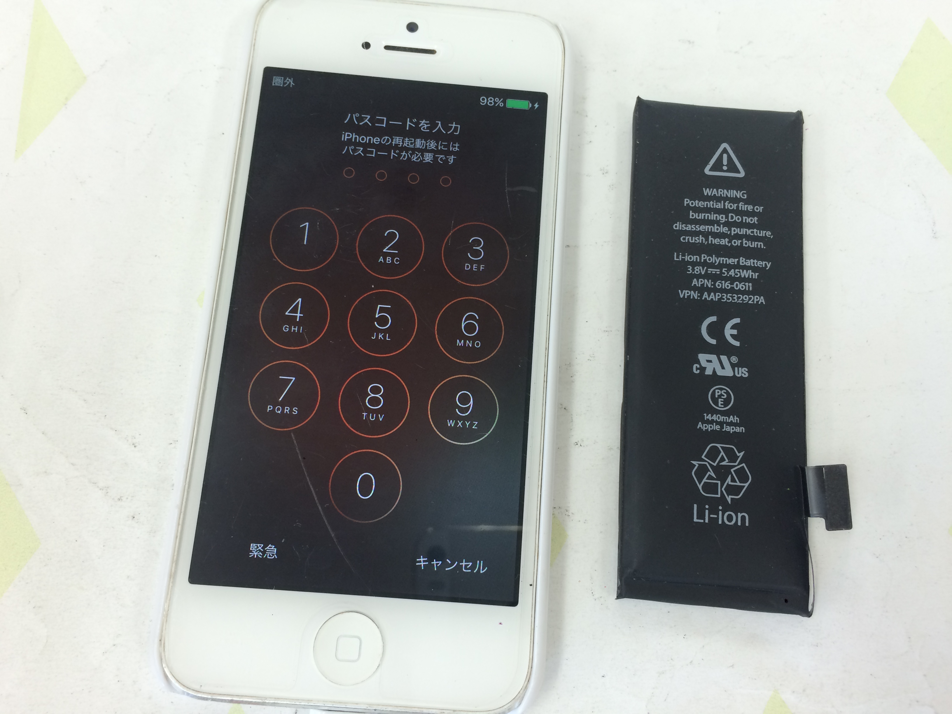iPhone5 バッテリー交換 ¥4,800 (キャンペーン適用1,000円オフ)