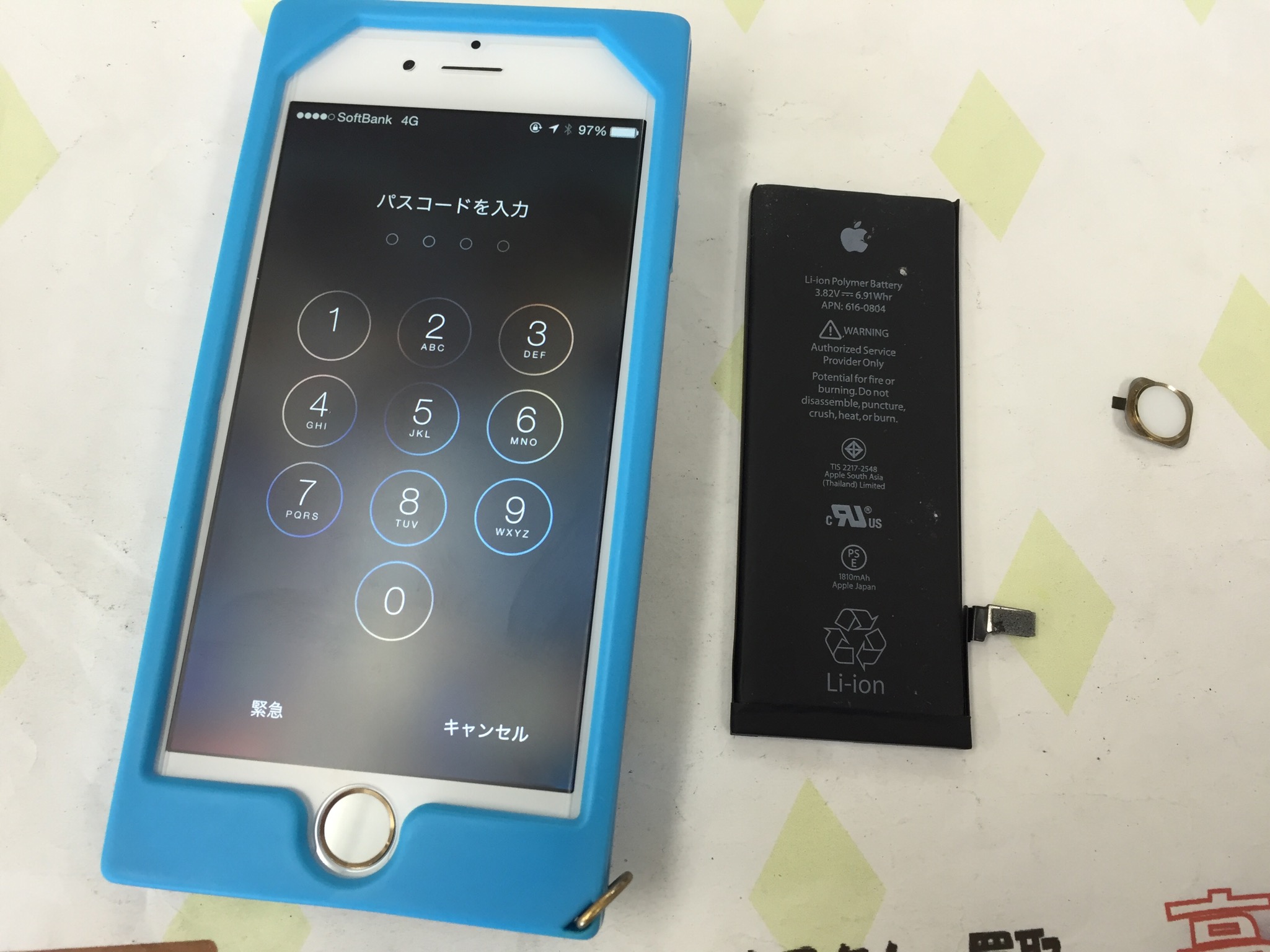 神戸市垂水区よりiPhone6 画面割れ、ホームボタン、バッテリー修理をご依頼いただきました。