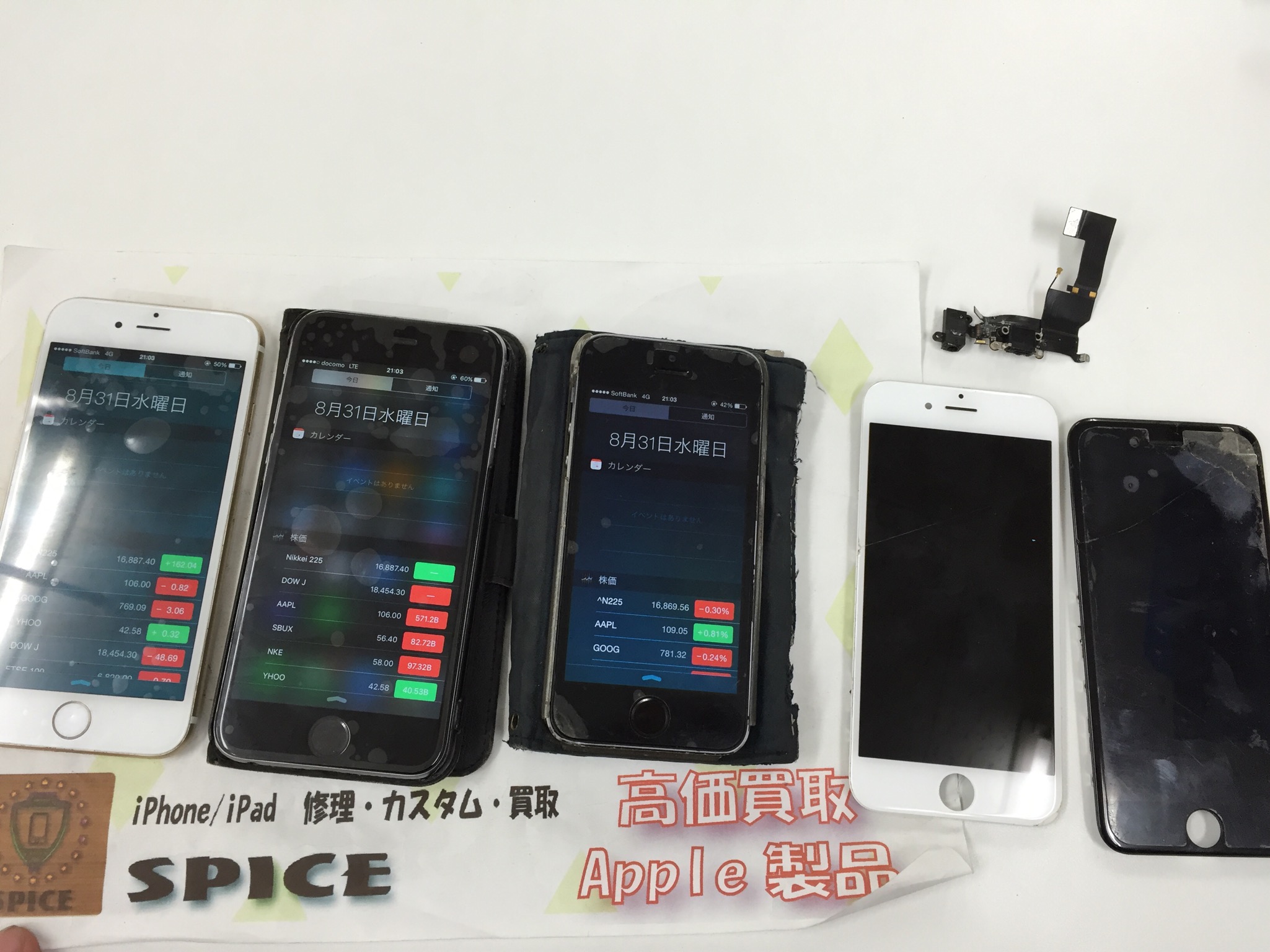 6はガラス割れ、液晶不良の2台、5sは以前からケーブルの接触が悪かったようですが純正のケーブルを差し込んでもこのアクセサリーは使用できませんと表示され充電出来なくなっておりました。