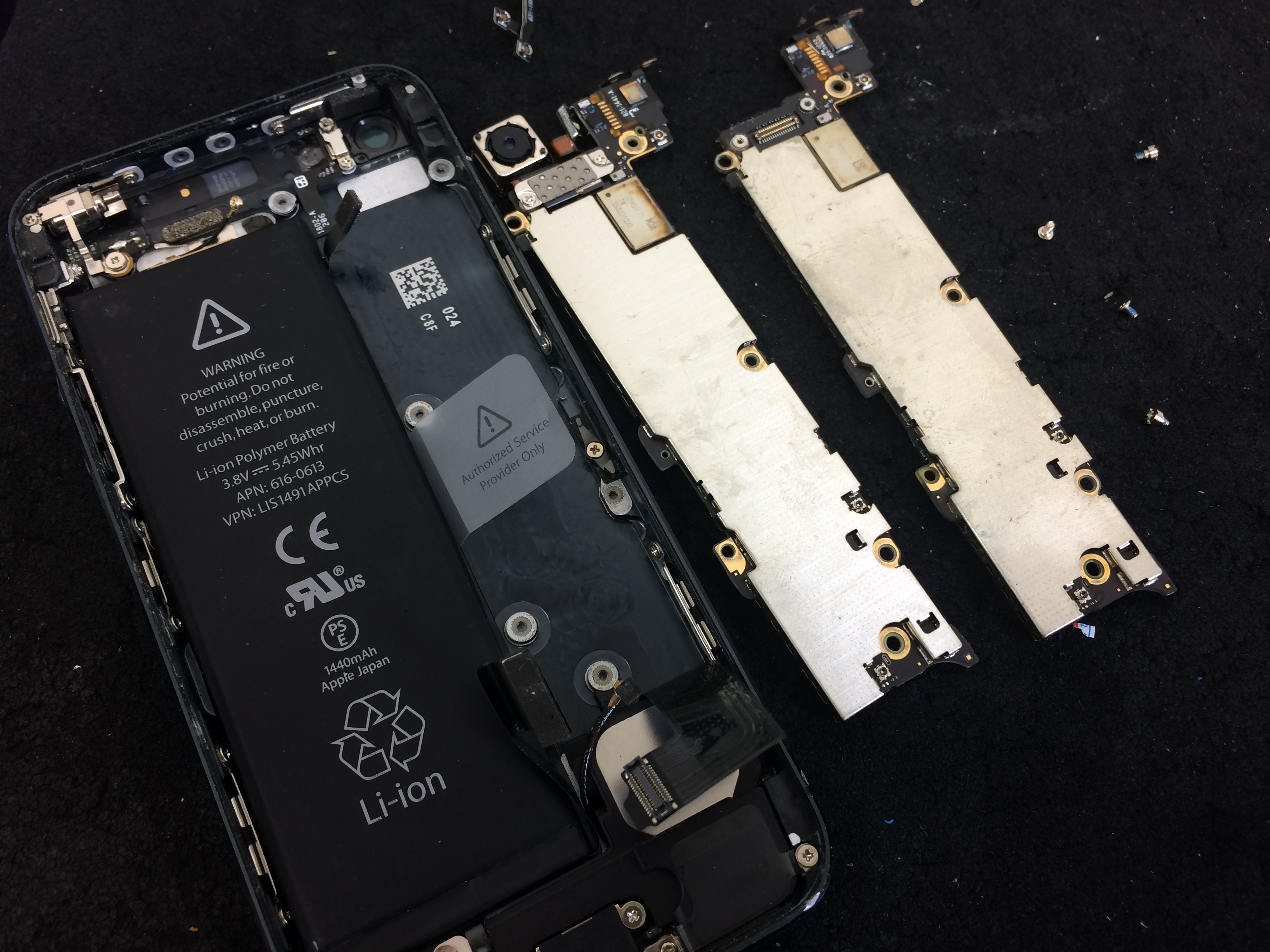 内部基板の不良により起動出来なくなったiPhone5の基板と正常な基板を入れ替える作業を承りました。