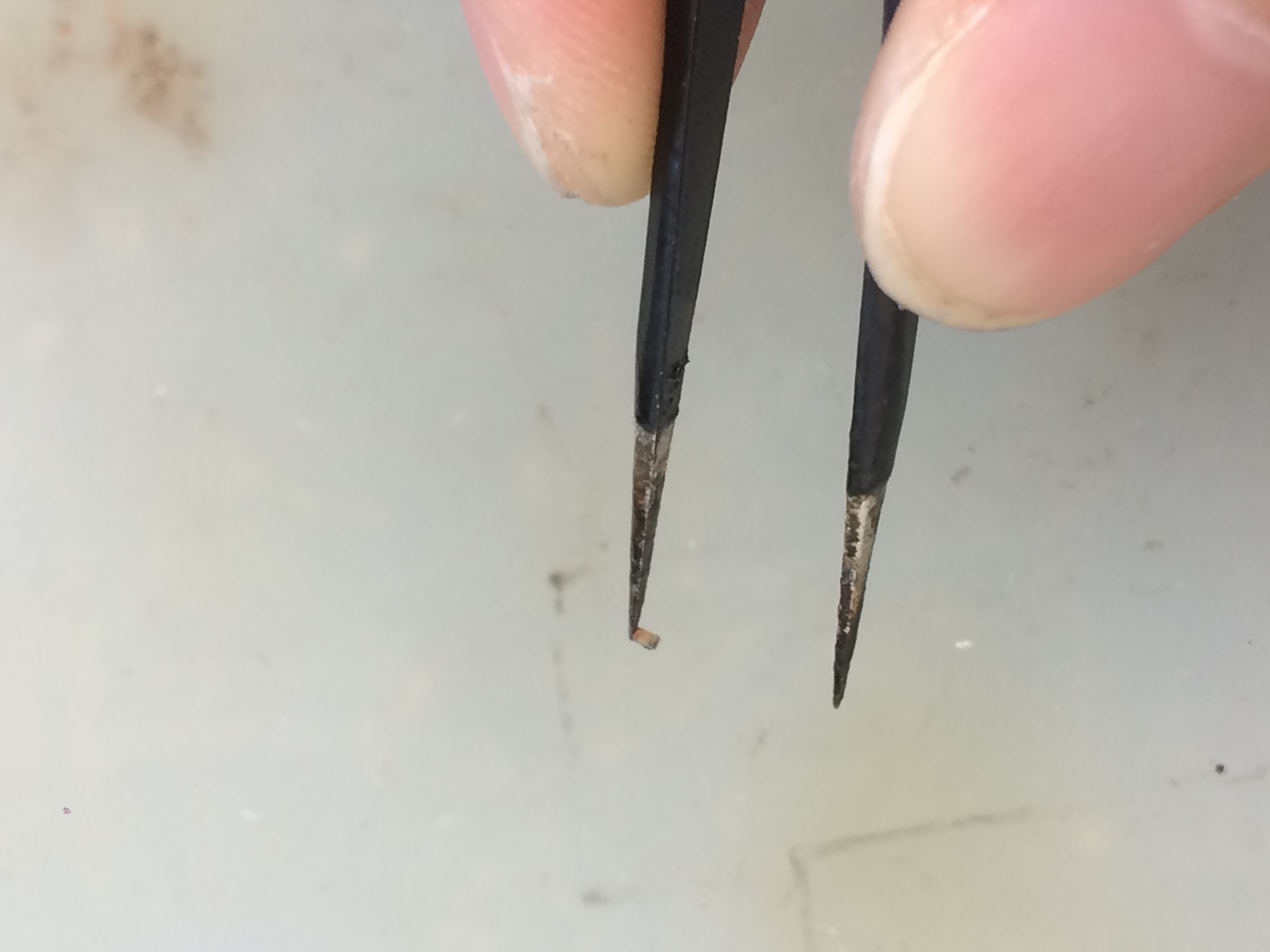 今回交換しているチップの大きさはピンセットの先についているこの非常に小さいチップになります。
