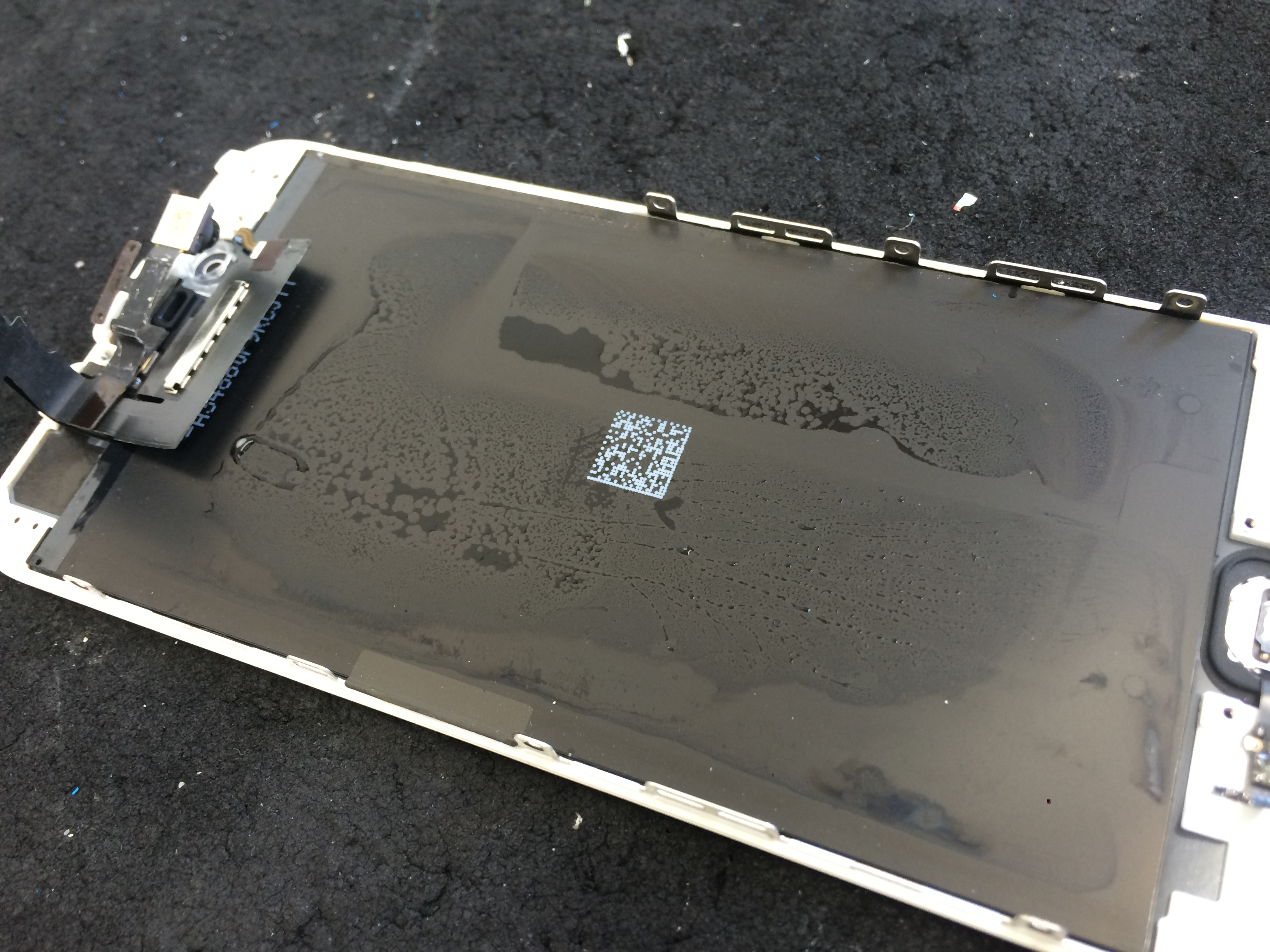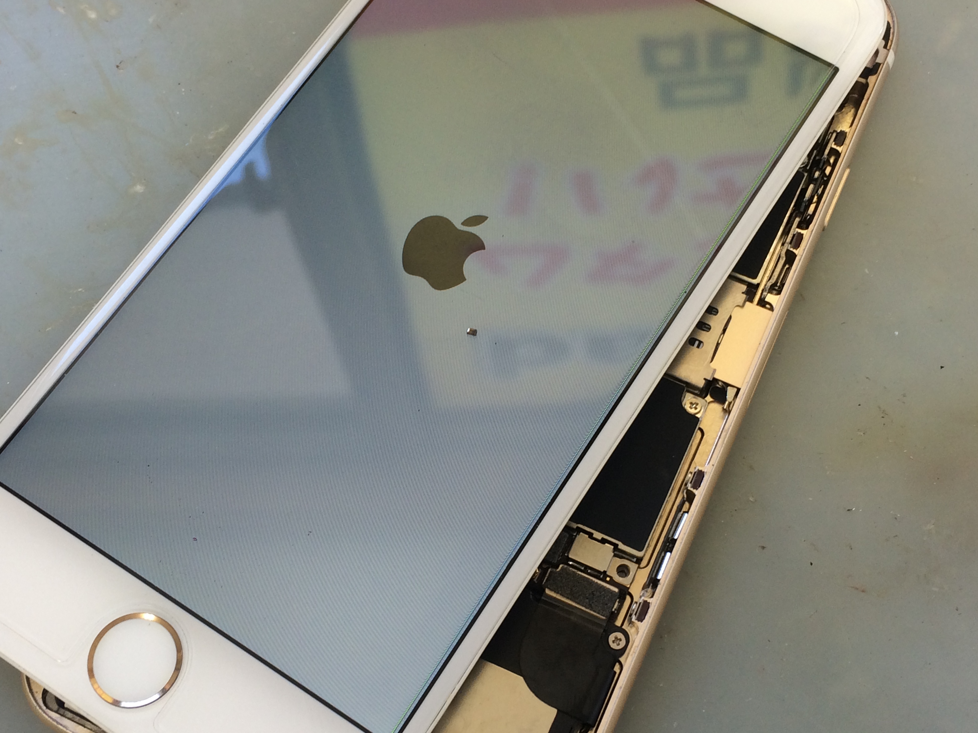 お客様のiPhoneについている液晶パネルやバッテリーなどといったパーツ自体は当店の検証機に取り付けると問題なく動作しますので基板がショートしてしまっているようです。