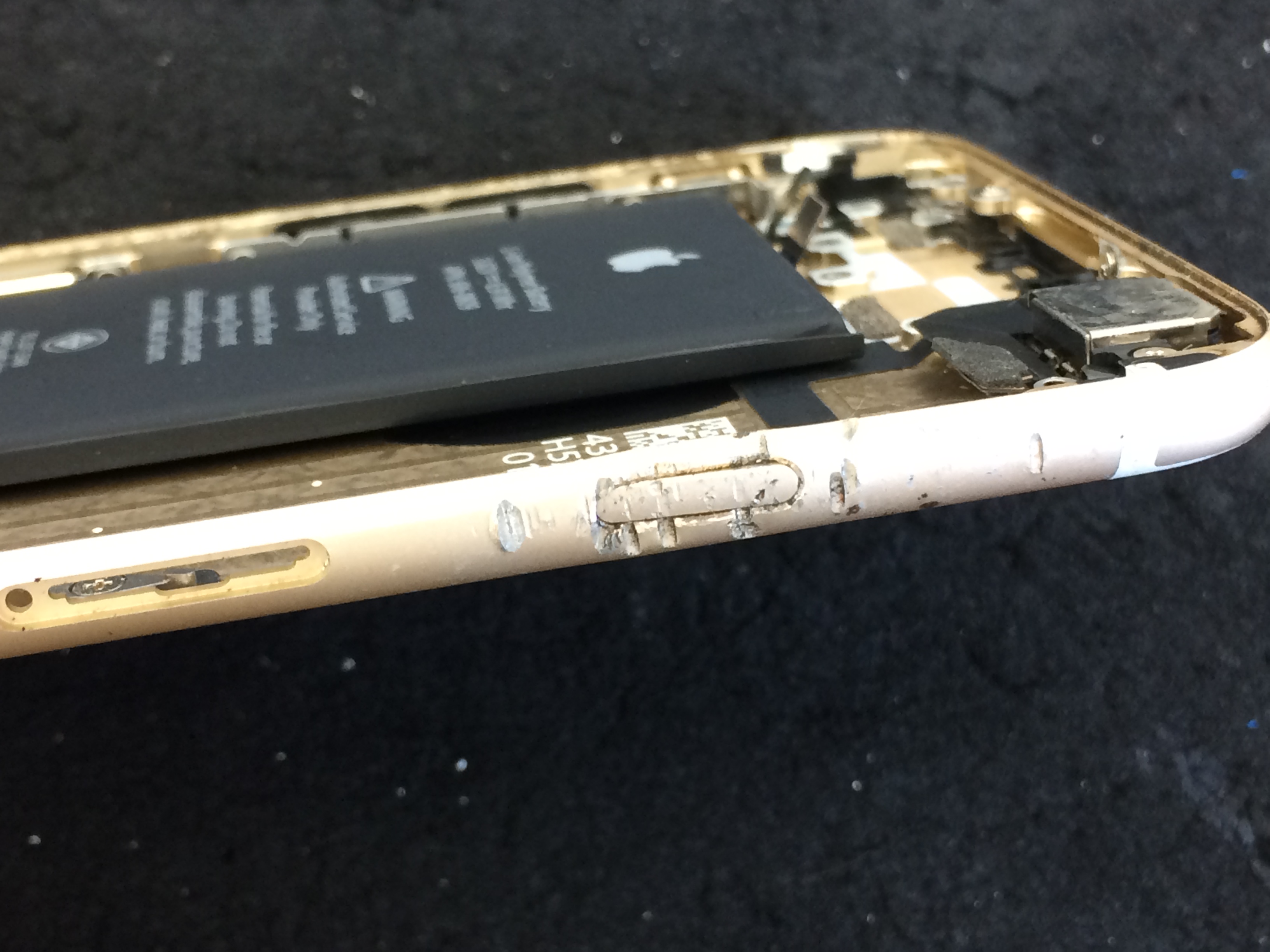 かなりの衝撃で落下してしまったようで電源ボタン部分が大きく潰れ、ボタンがめり込み押せない状態でした。