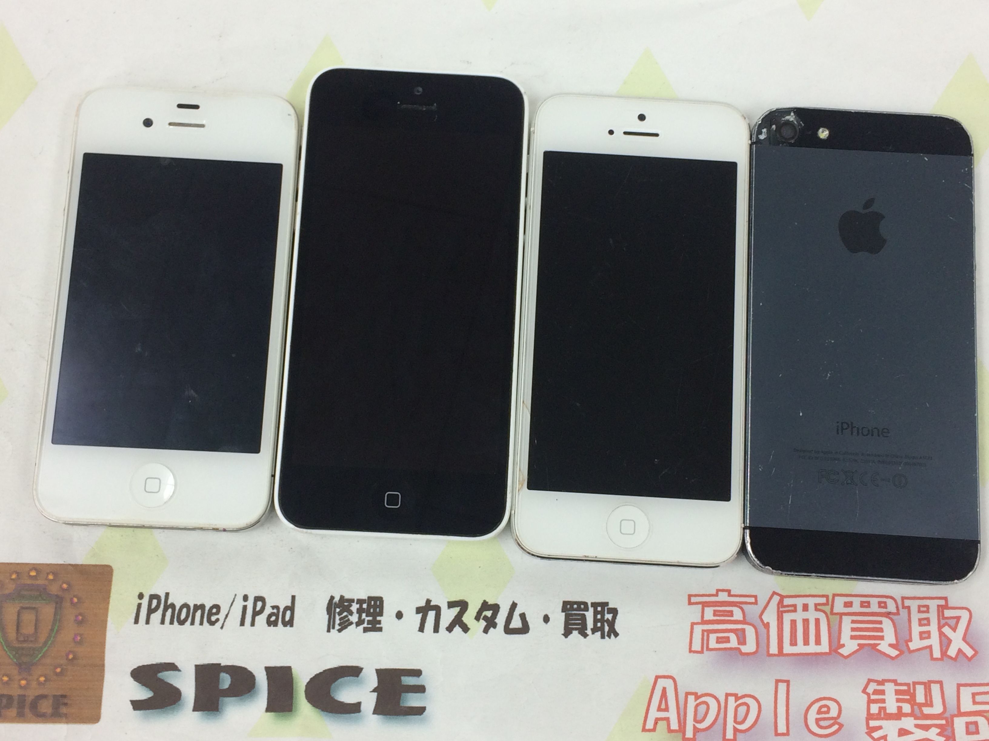 高砂市よりガラス割れなどiPhone4、5、5cまとめて4台を買取させて頂きました。