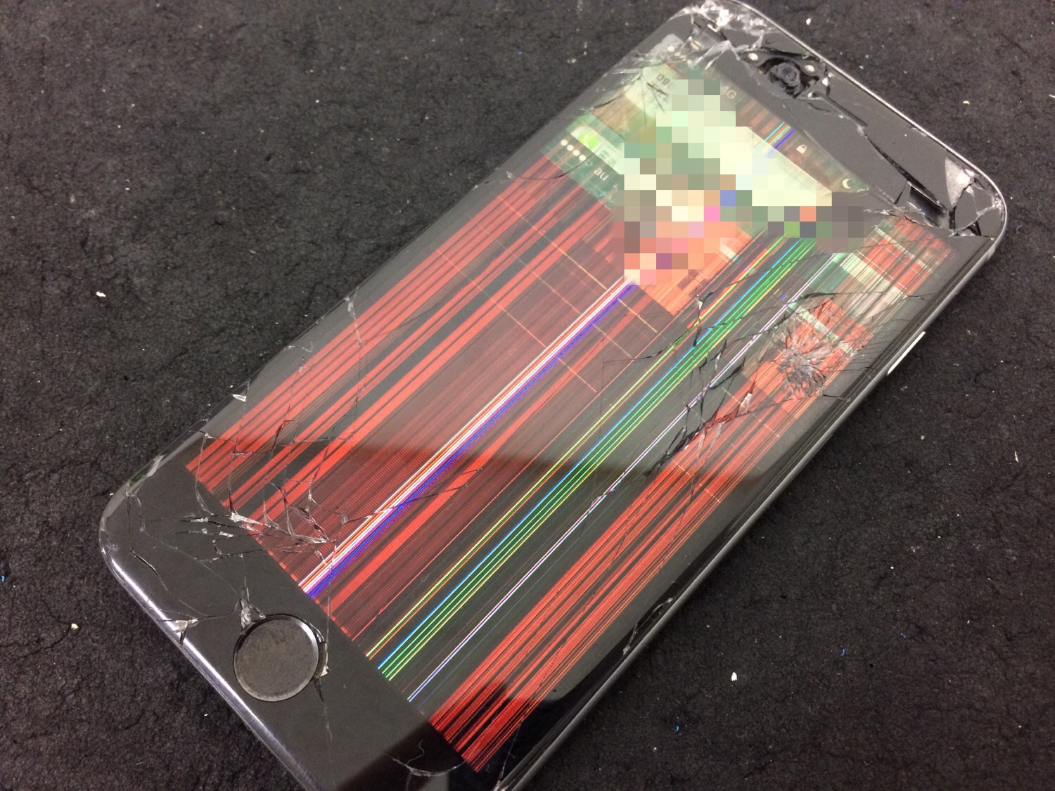 画面割れの状態で長く使用されていたそうですが液晶表示がおかしくなりタッチパネルも暴走している状態になりご来店です。