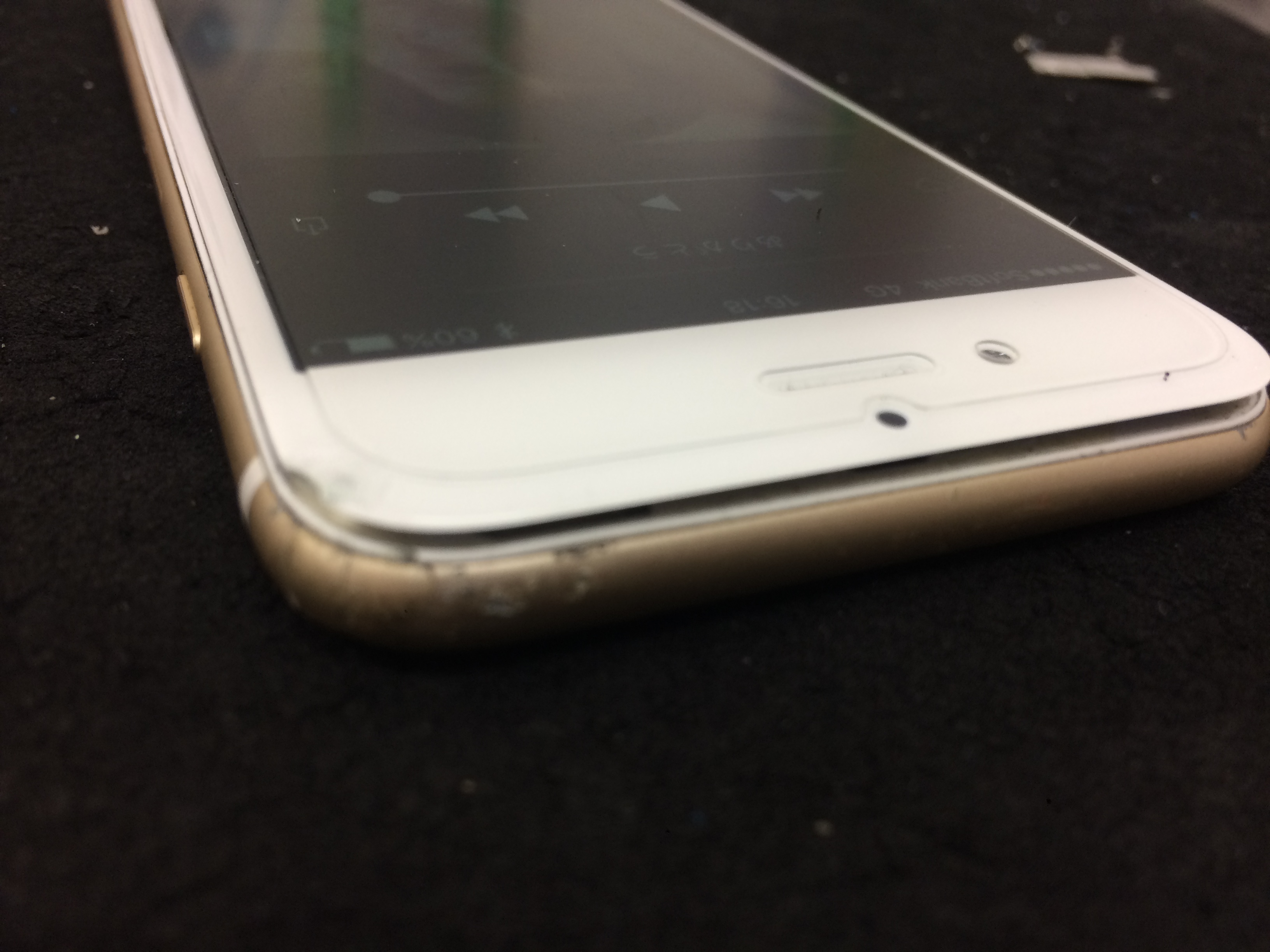 以前、他店で画面修理をされておりましたがガラスが完全にフレームから剥がれており、それが原因で液晶不良となっておりました。