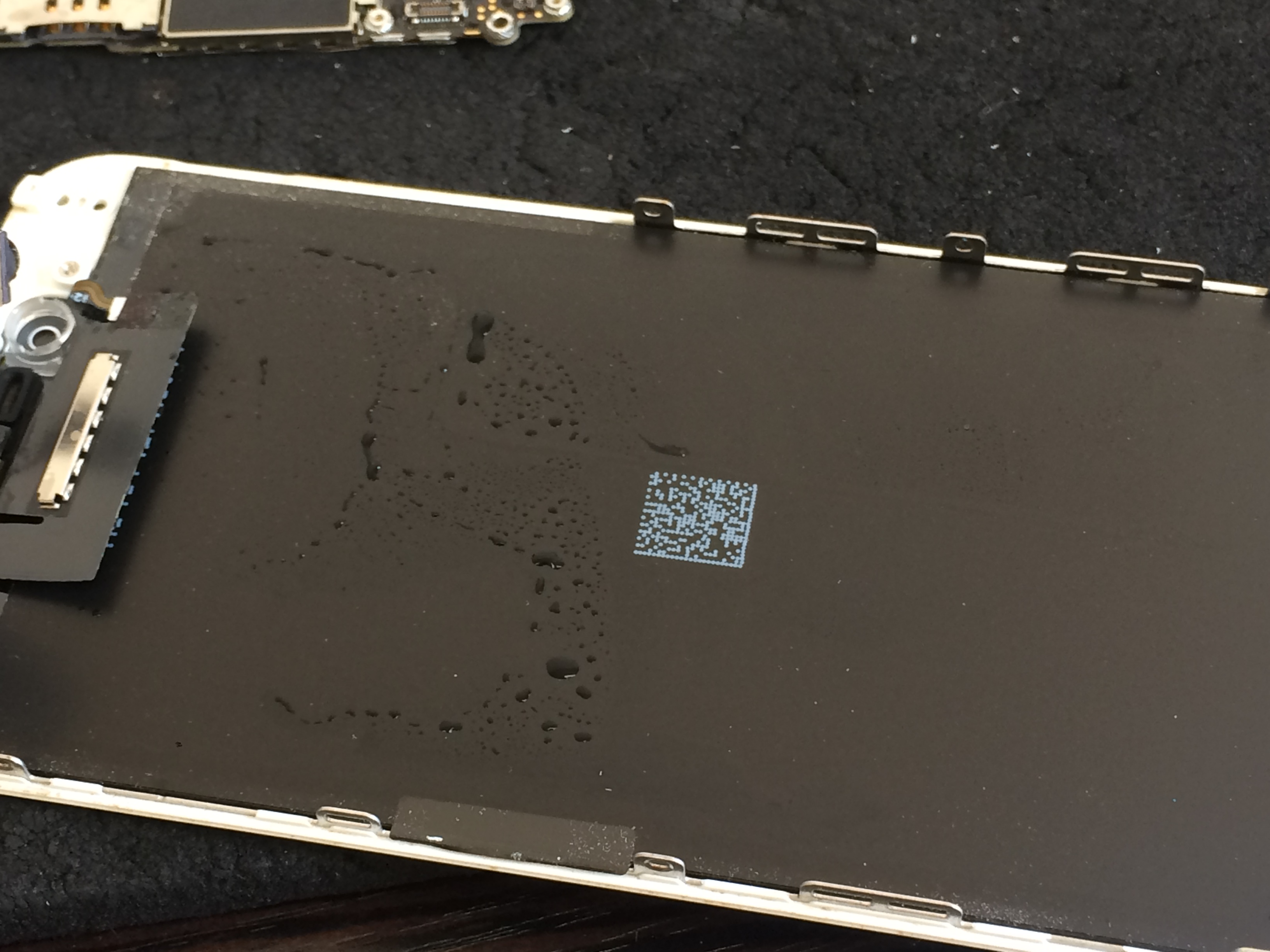 受付時に内部を確認させて頂くと内部にはまだ水分が残っており、コネクター部分に腐食が発生しておりました。