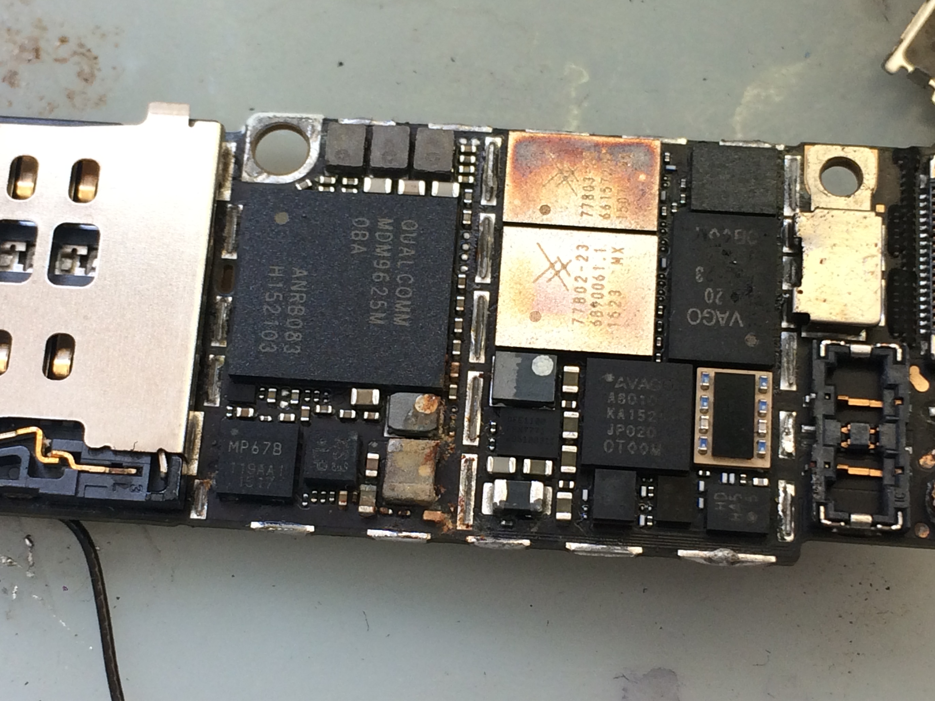 受付時に内部を確認させて頂くとまだ水分もかなり残っており、濡れた状態で電気を通した事により基板上には多数腐食やショート痕が確認出来ます。