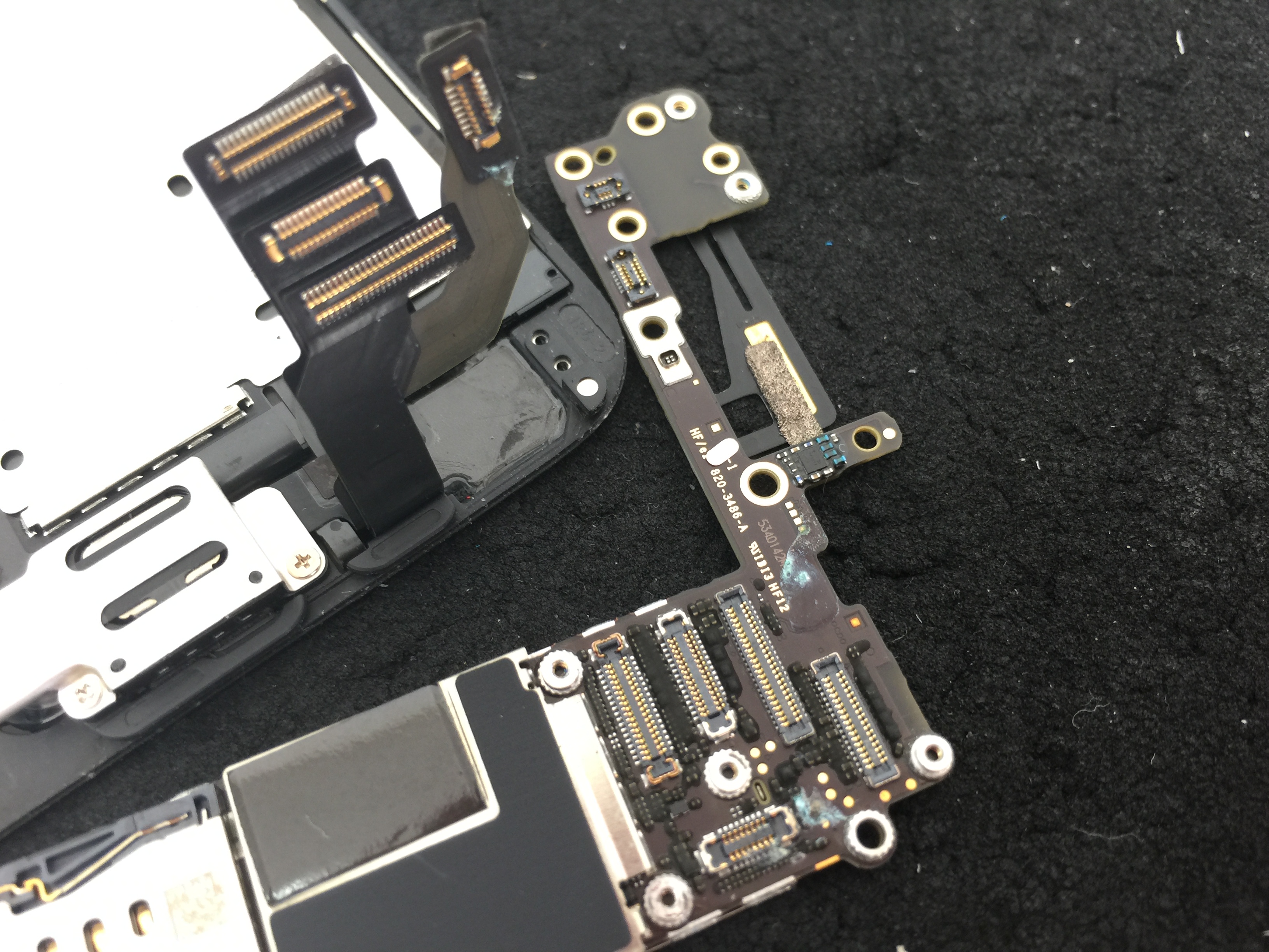 作業の途中で1ヵ所、iPhone6の水没時によくショートしてしまう箇所がショートしているのが確認出来ました。