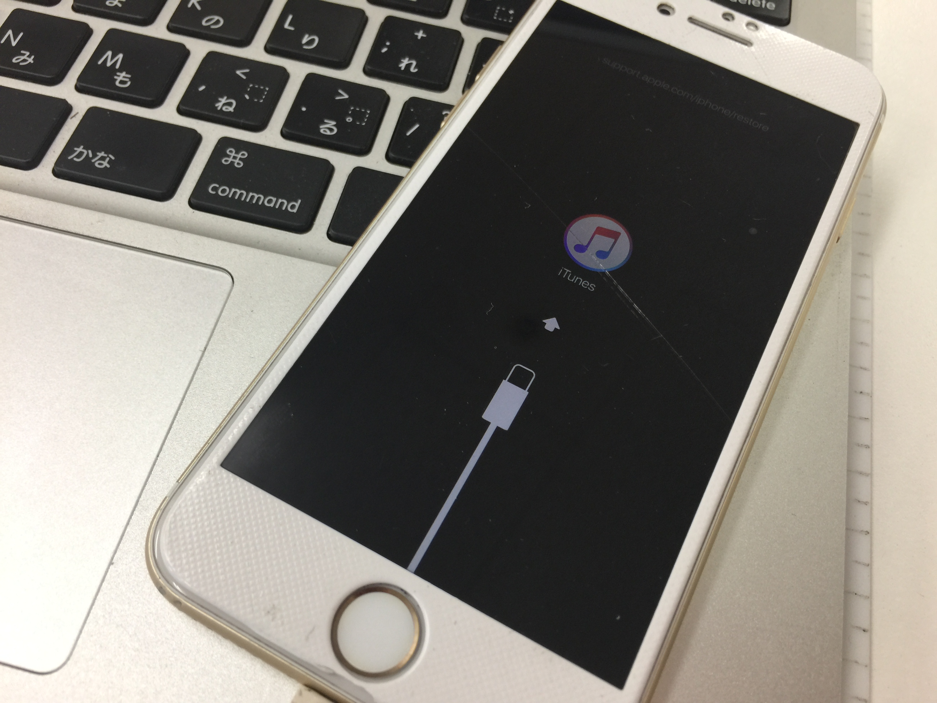 使用中にSIMカードを読み込まず検索中や圏外になってしまい調子が悪かったようですが昨日、急に画面にiTunesのマークが表示されるリカバリーモードになってしまったとご来店です。