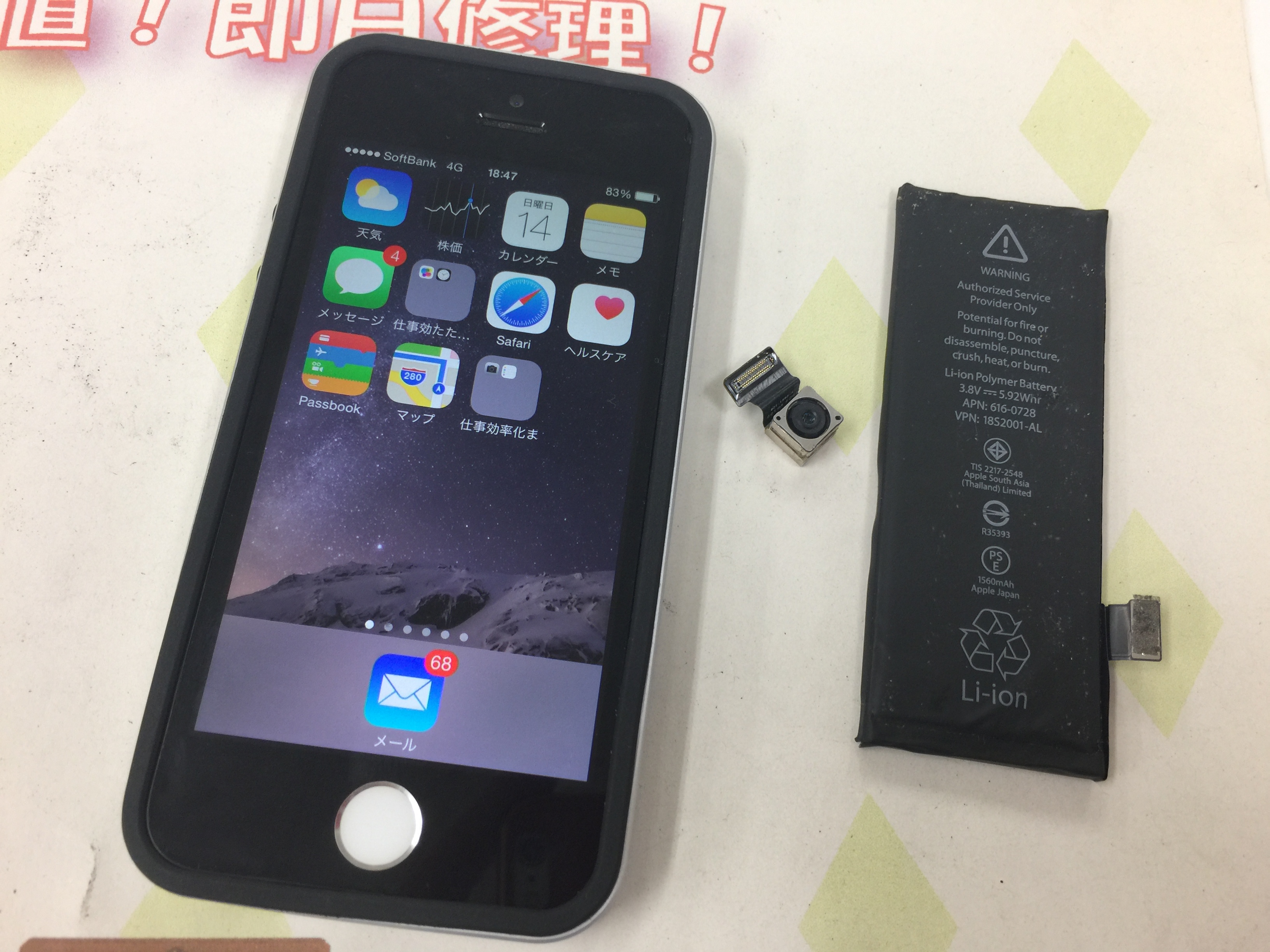 ◆明石市よりiPhone5s バッテリー交換、アウトカメラ、バックガラス修理 -2017 5/14-