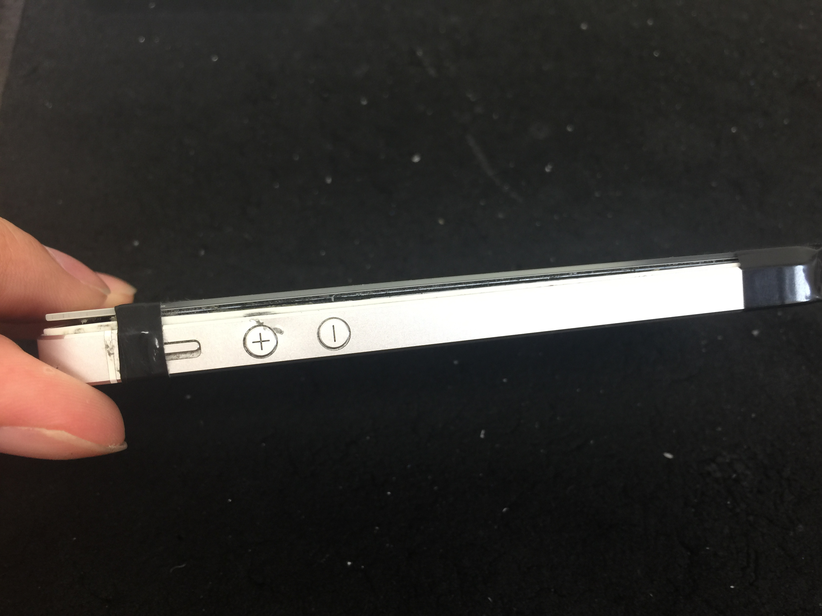 膨張により画面が完全に浮き上がっておりましたがお時間15分ほどで元通り修理完了です。
