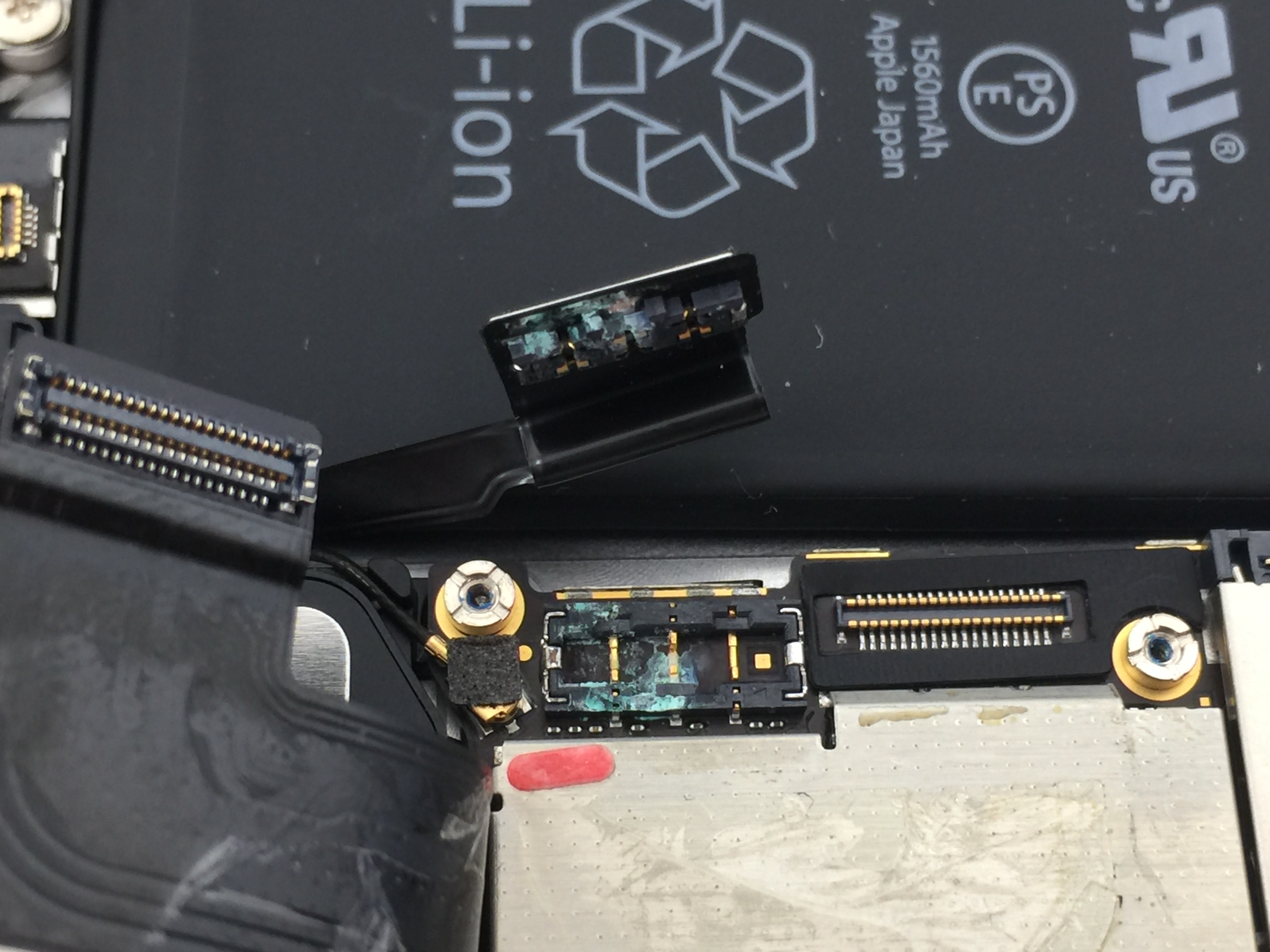 バッテリーのコネクター周りなど腐食が発生しておりましたので一度全て分解し洗浄作業後、画面を新しい物に交換し修理完了です。
