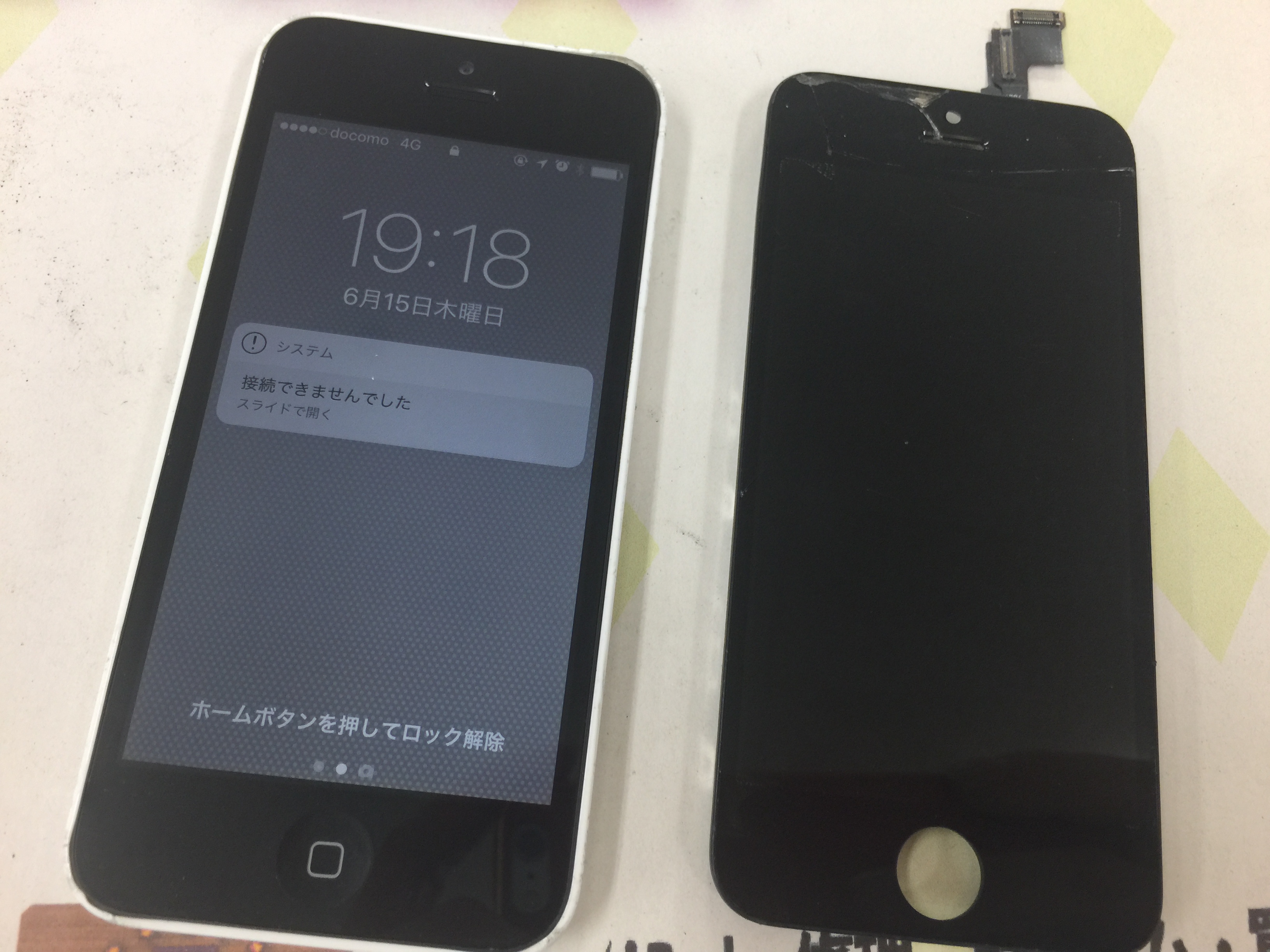 iPhone5c ガラス割れ、液晶不良修理 ¥10,800