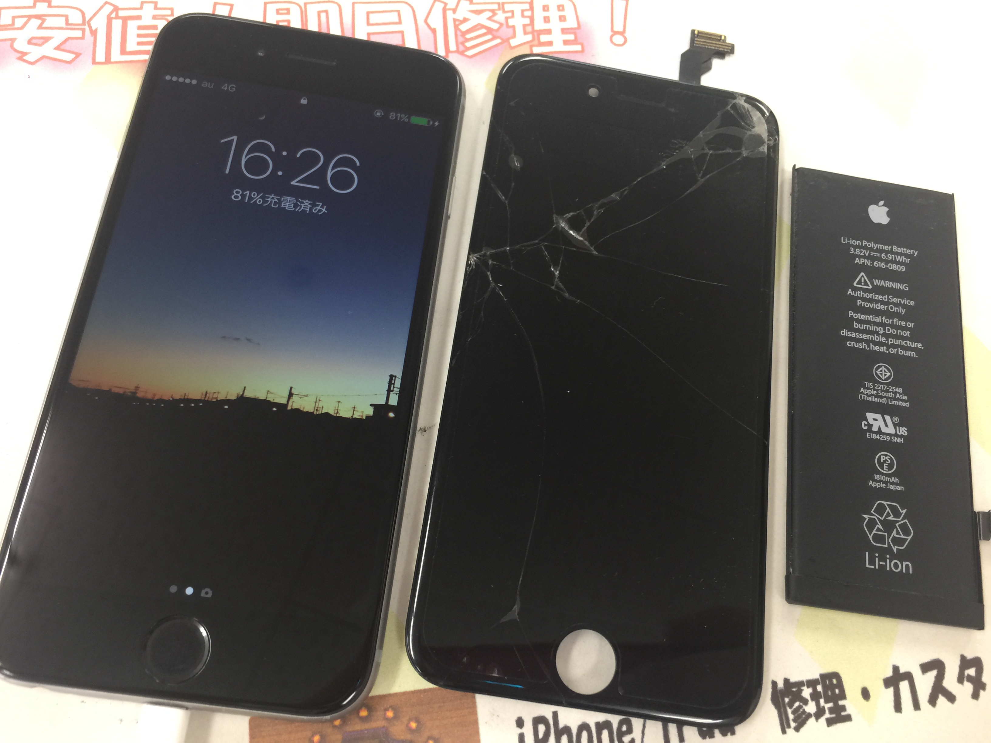 加古川市よりiPhone6 ガラス割れ修理、バッテリー交換をご依頼いただきました。