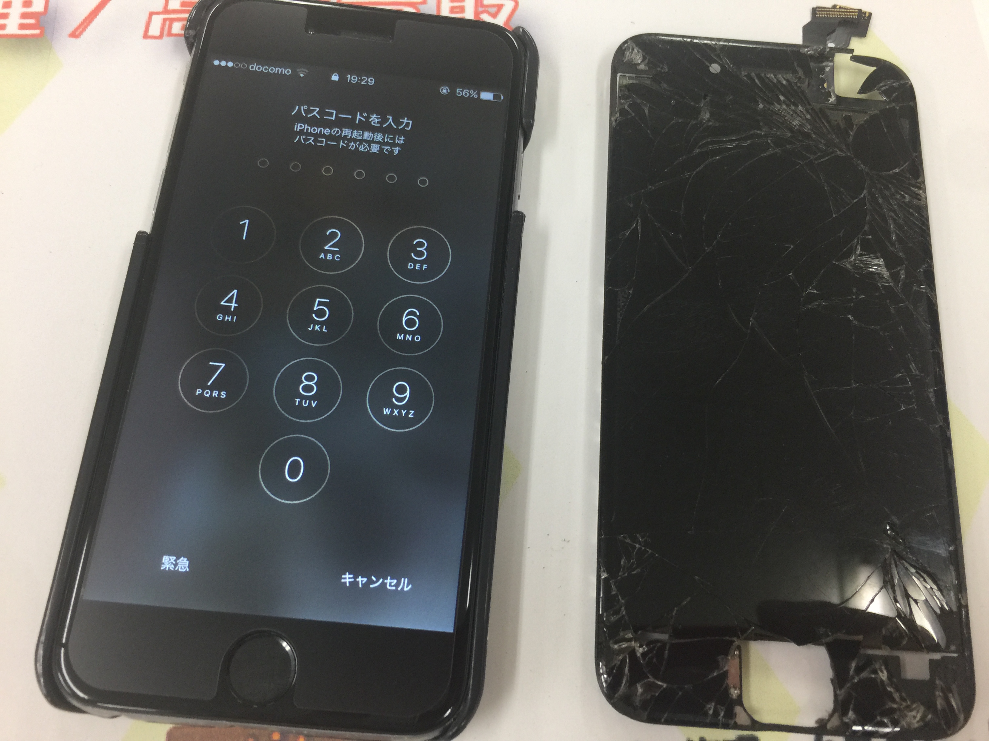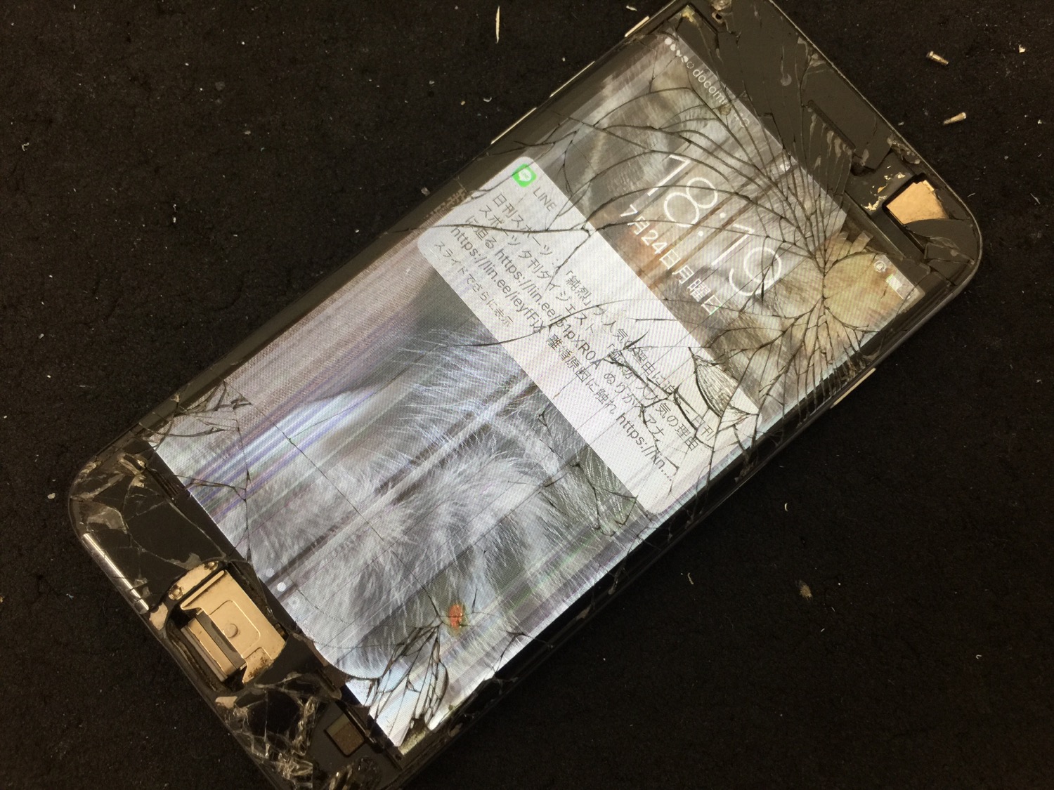 ガラス割れの影響で液晶表示がおかしくなり操作出来ない状態で、ホームボタンも取れてなくなっておりました。