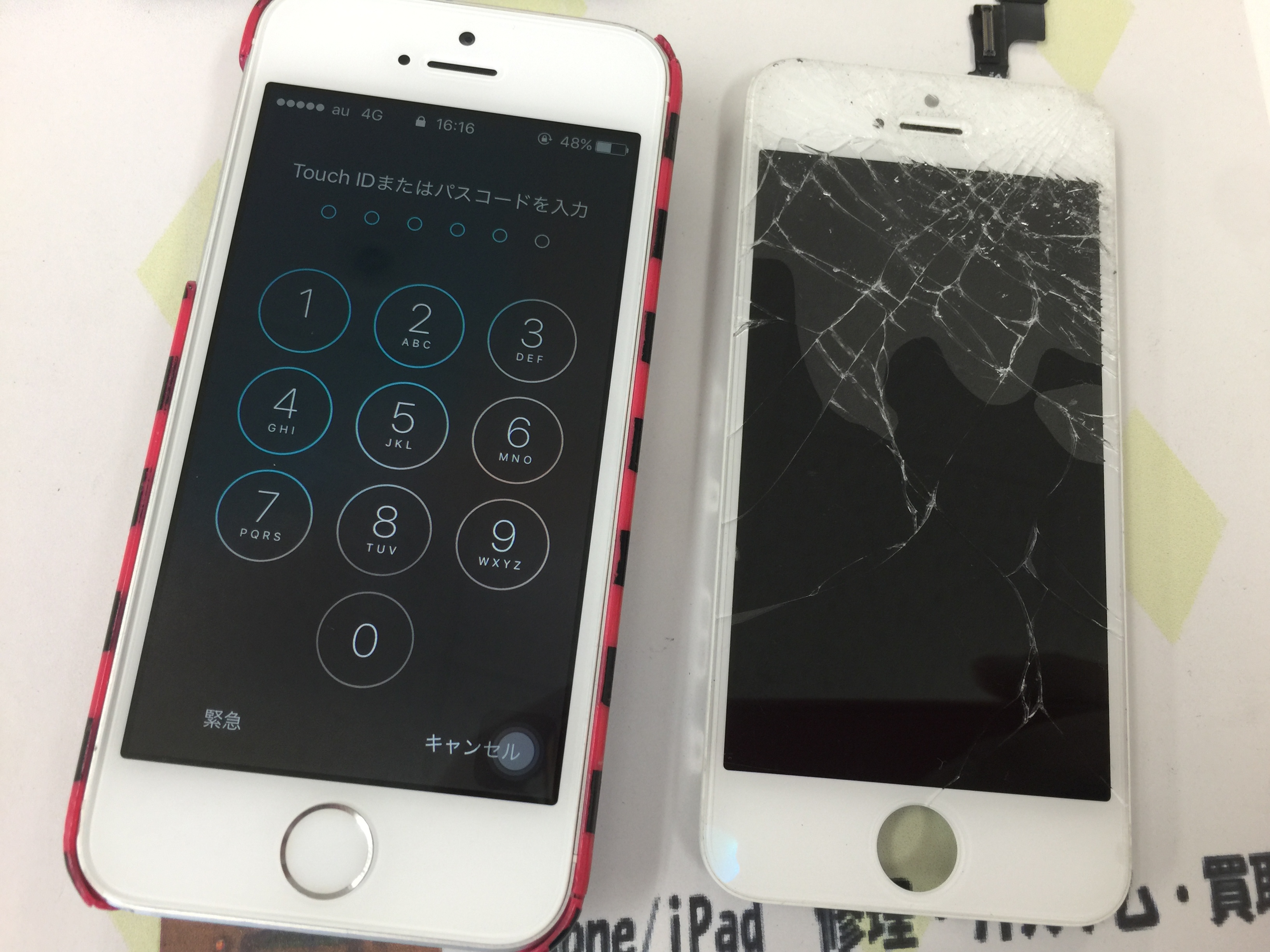 画面激しく割れておりましたがお時間20分ほどで修理完了です。