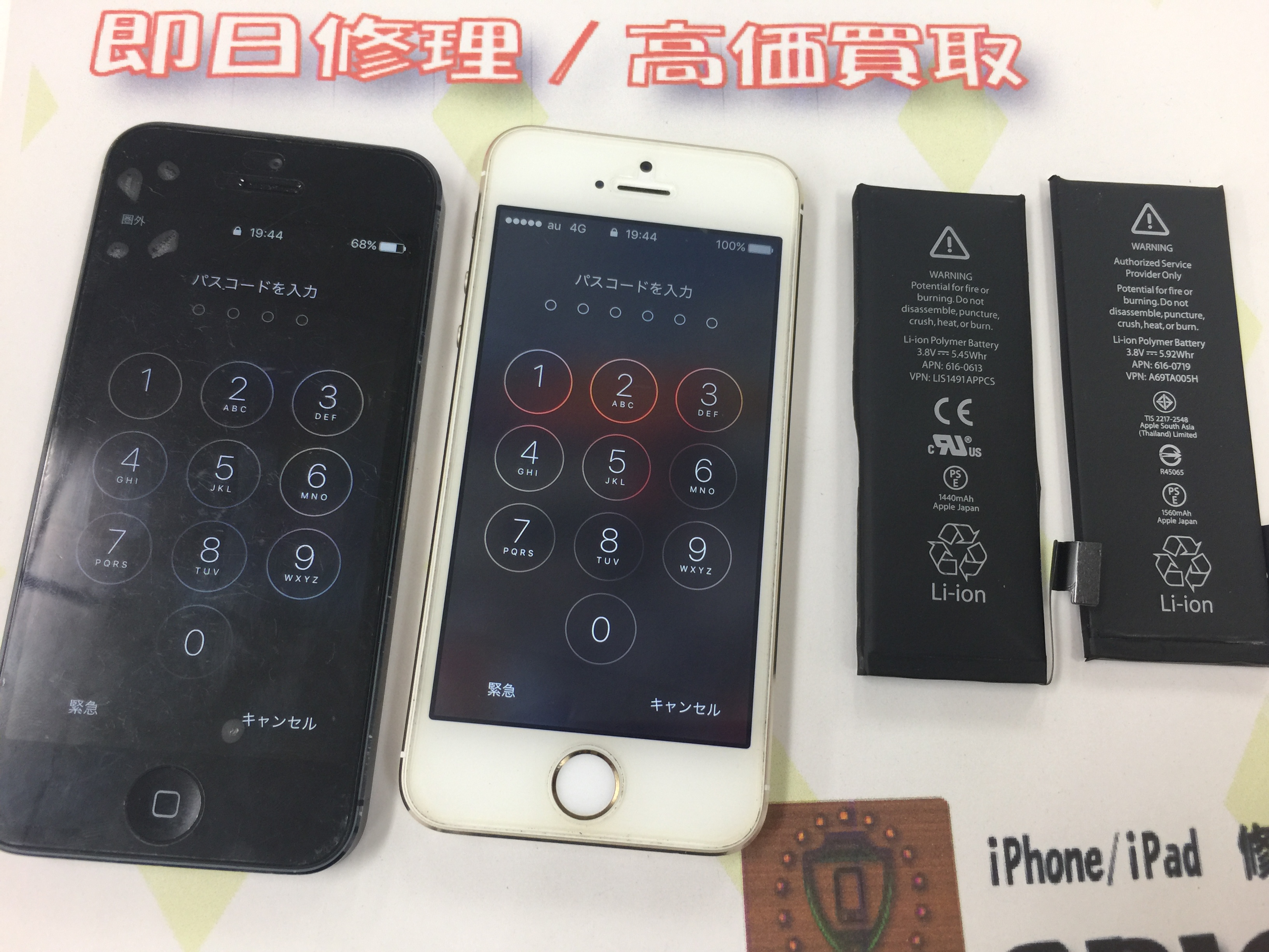 加古川市よりiPhone5s、5の2台バッテリー交換をご依頼いただきました。
