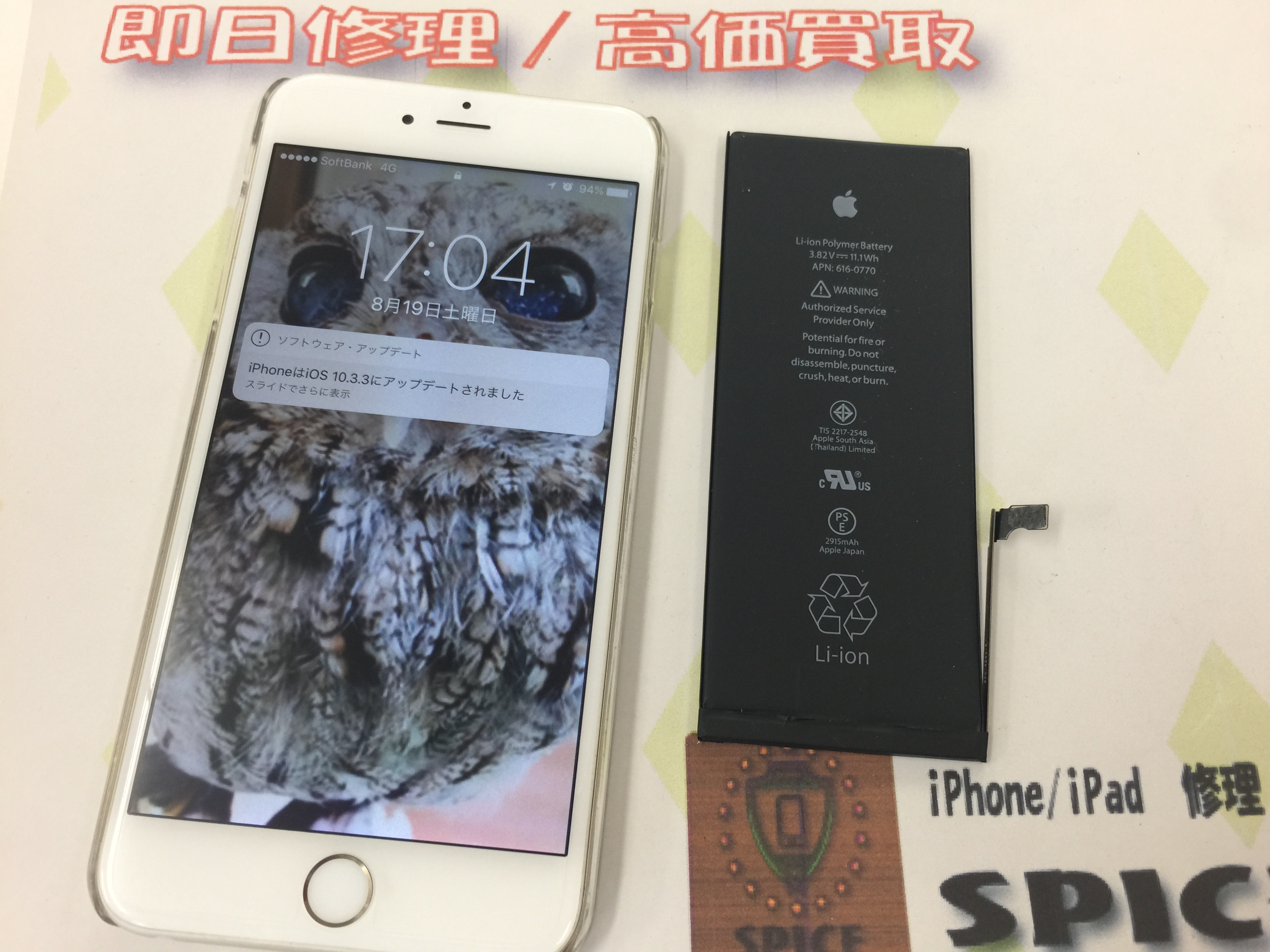 iPhone6 Plus バッテリー交換 ¥5,300(3周年キャンペーン1,500円オフ)