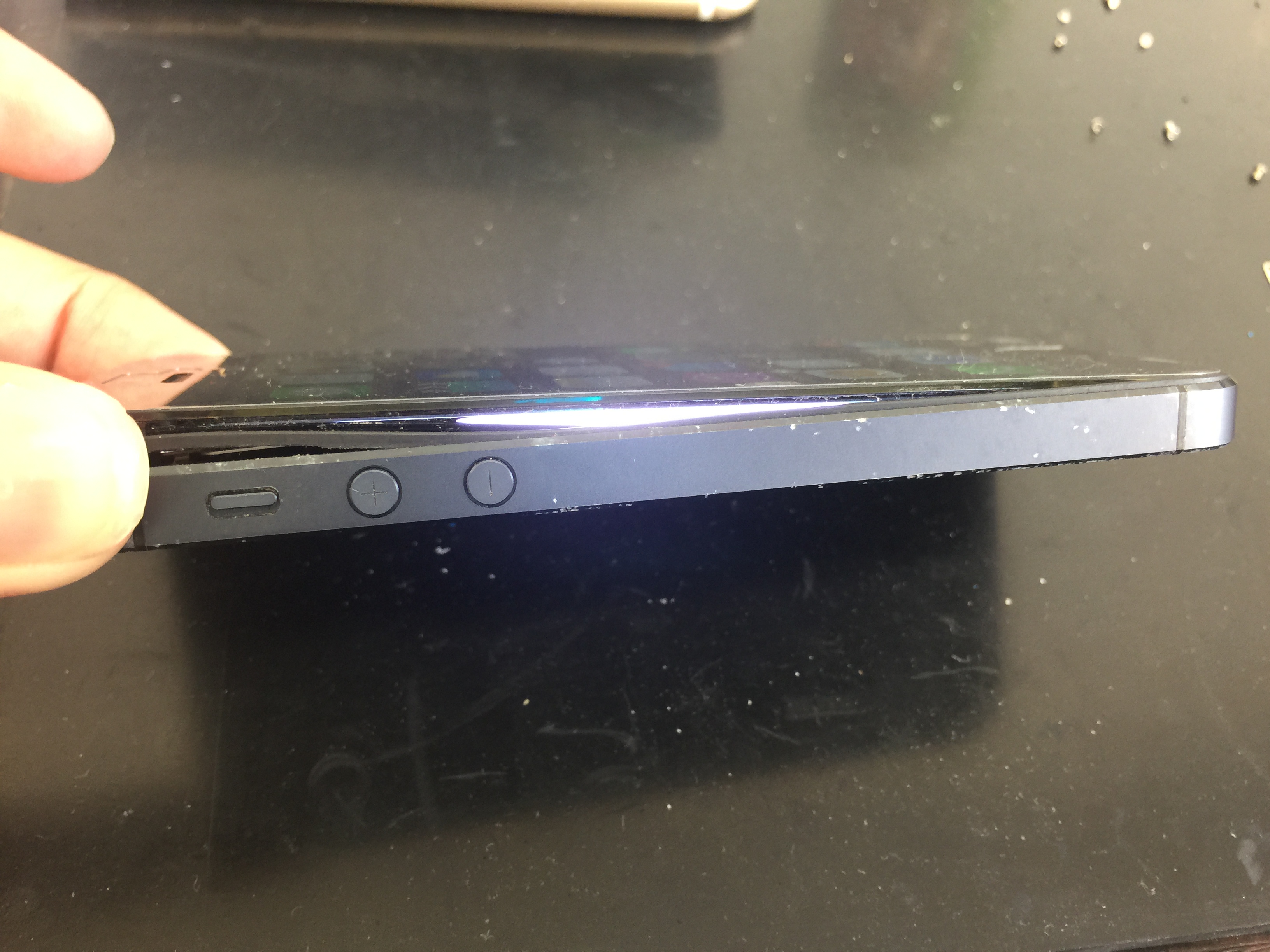 バッテリー膨張により画面のガラスが浮いてきて本体との間に隙間が出来ている、充電の減りが早い、充電が残っているのにいきなり電源が落ちる、電源が入らなくなったなどの症状はバッテリー劣化による症状が大半ですので新しいバッテリーに交換する事により改善されます。