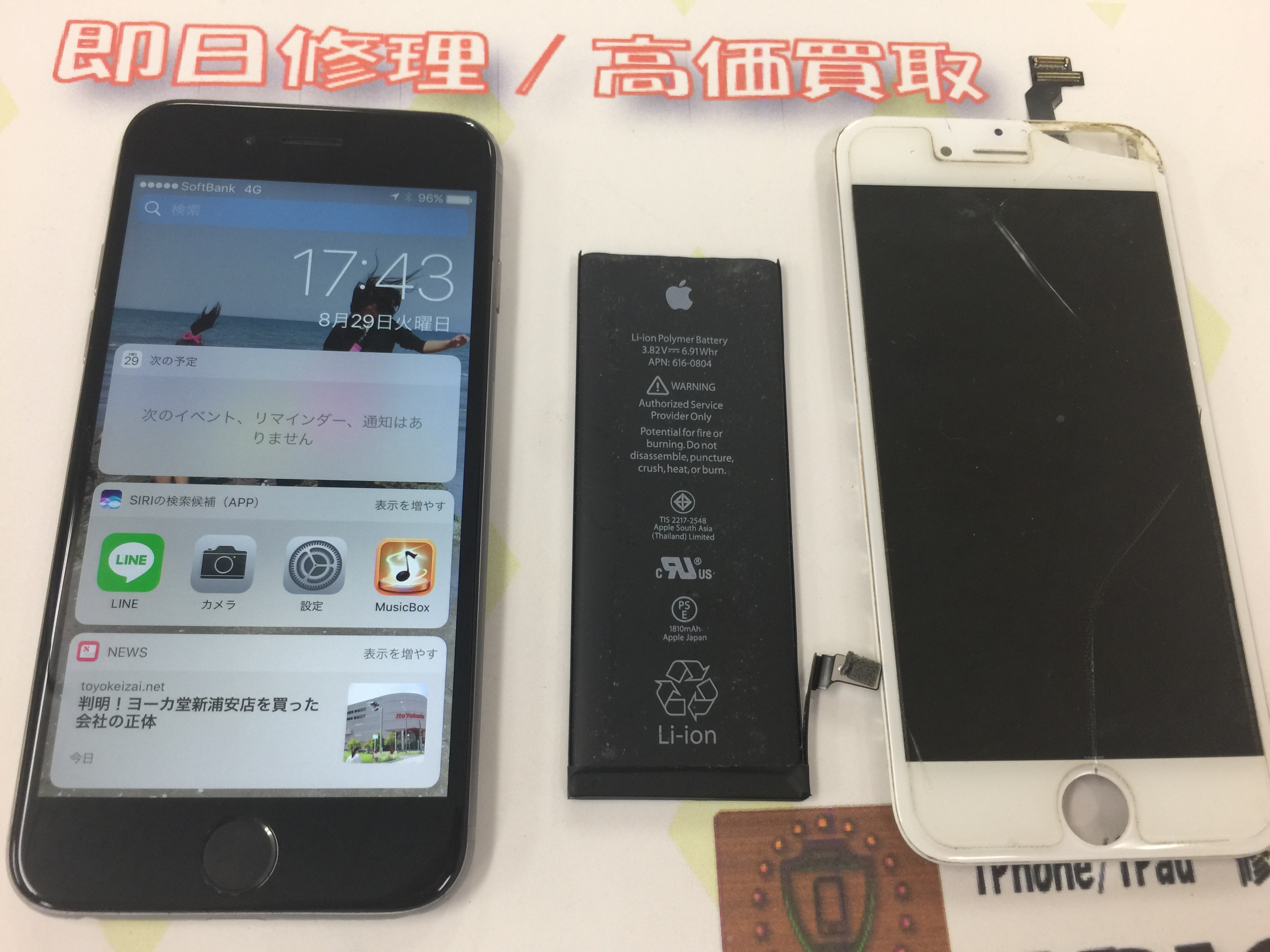 加古川市よりiPhone6 ガラス割れ、バッテリー交換をご依頼いただきました。