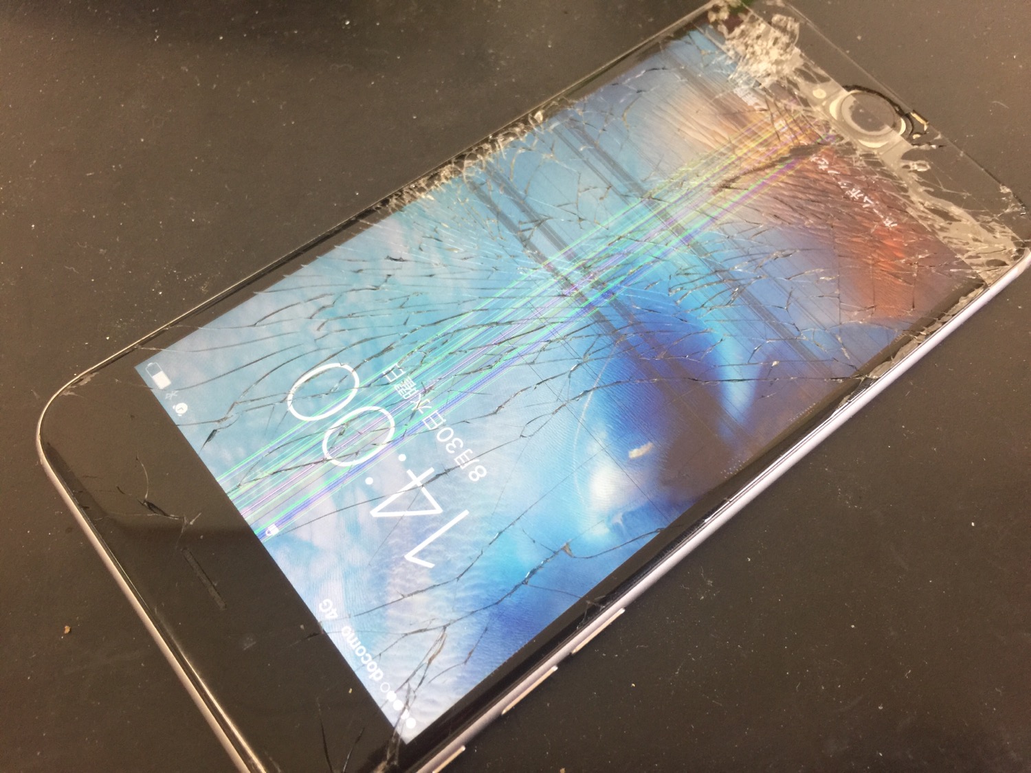 画面割れの影響で液晶不良、タッチパネル不良となっておりましたがお時間30分ほどで修理完了です。