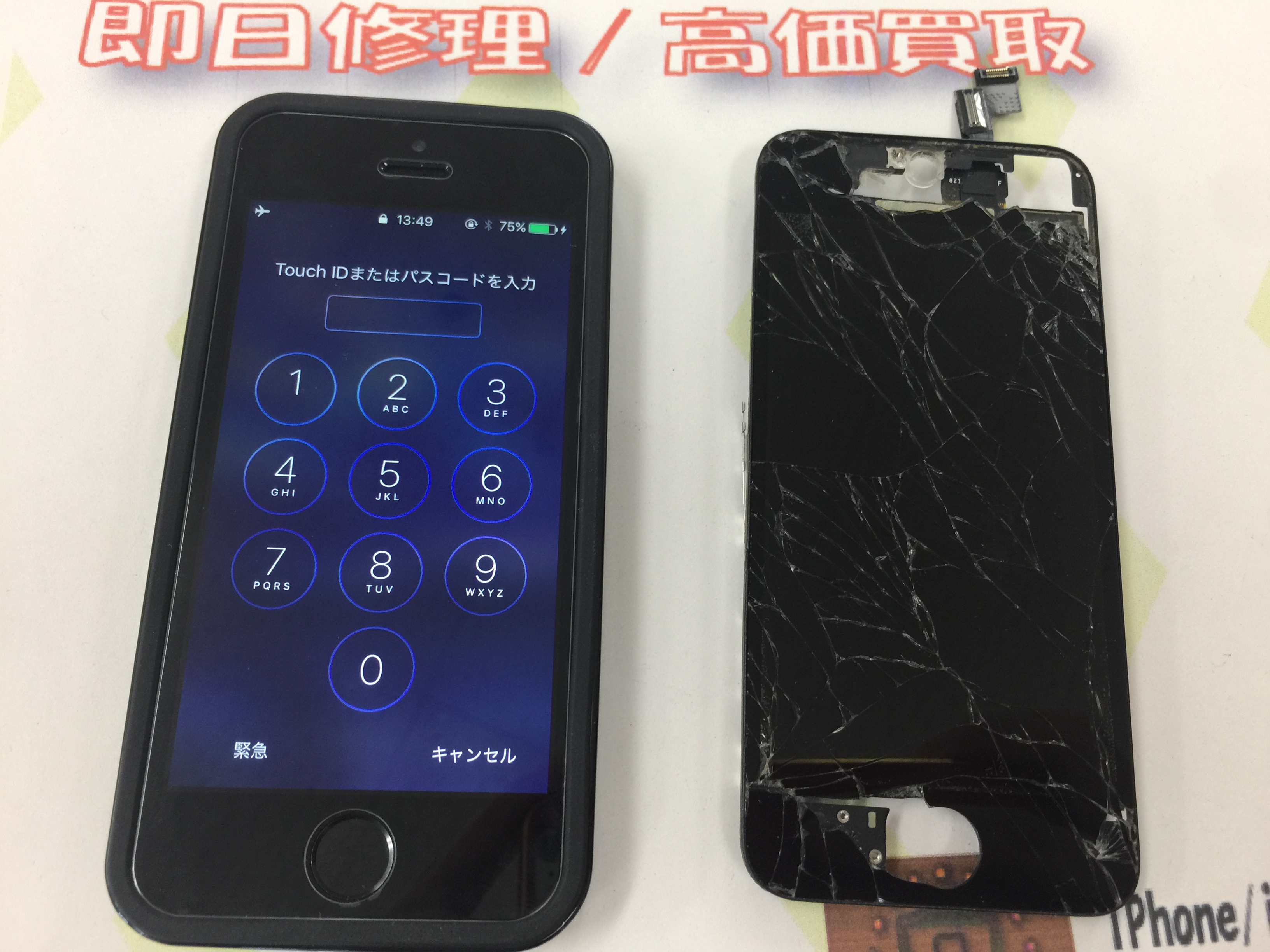 iPhone5s ガラス割れ、タッチパネル不良修理 ¥10,800