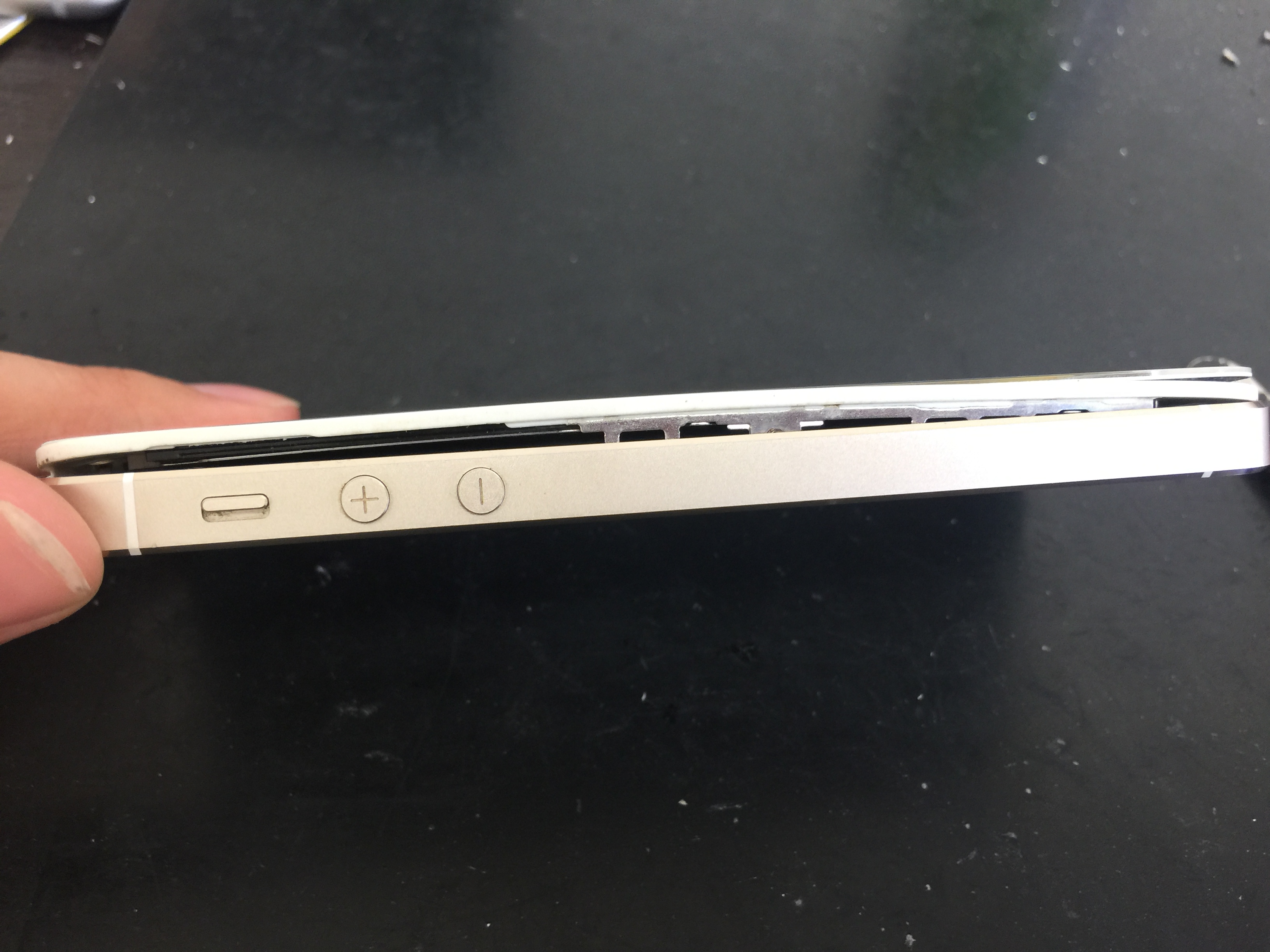 劣化によりバッテリーが膨張し画面左側面が完全に浮き上がっている状態でご来店です。