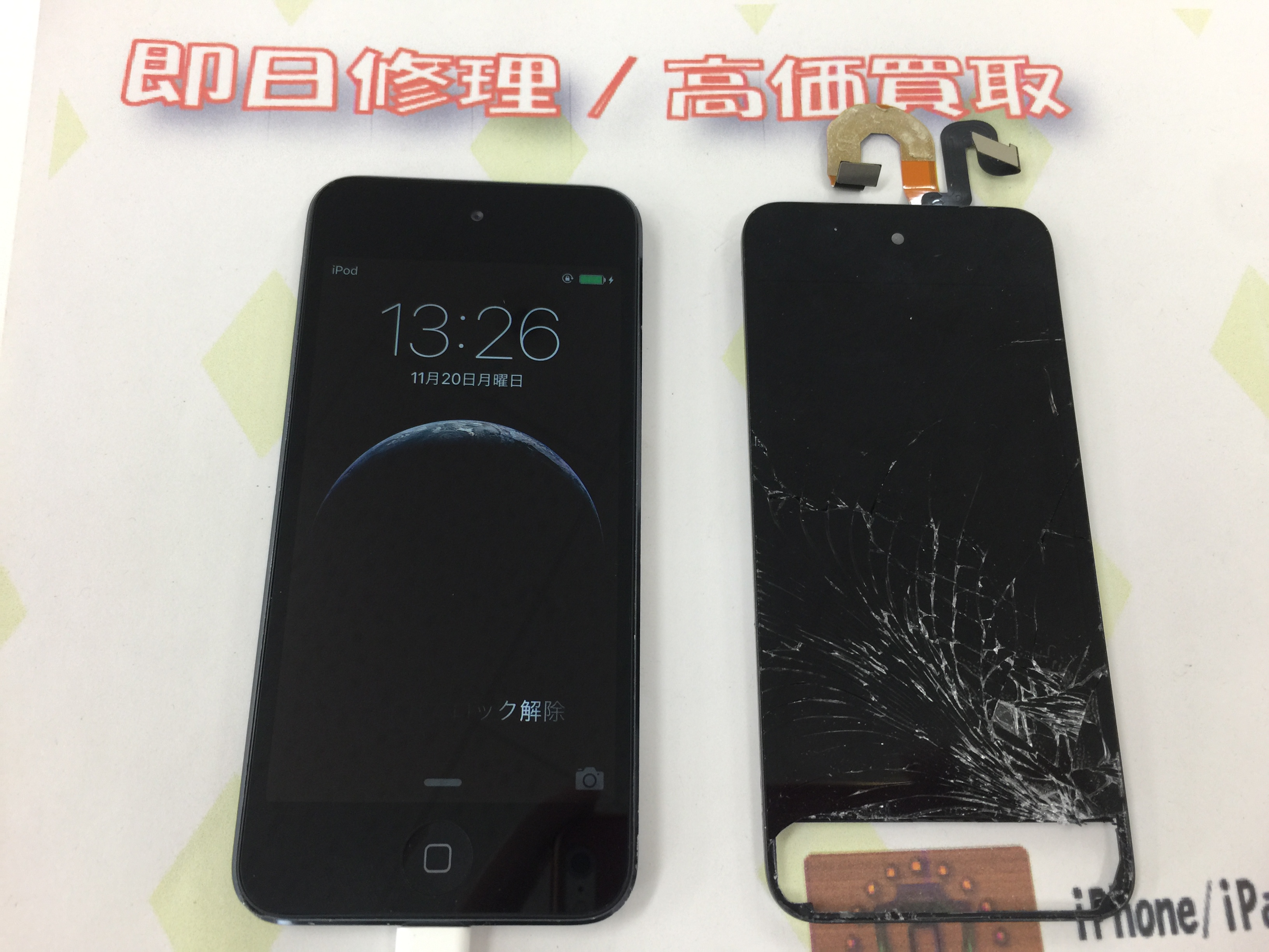 当店ではiPhone、iPadの他に一部iPodシリーズにも修理対応しておりますのでお困りの際はお問い合わせください。