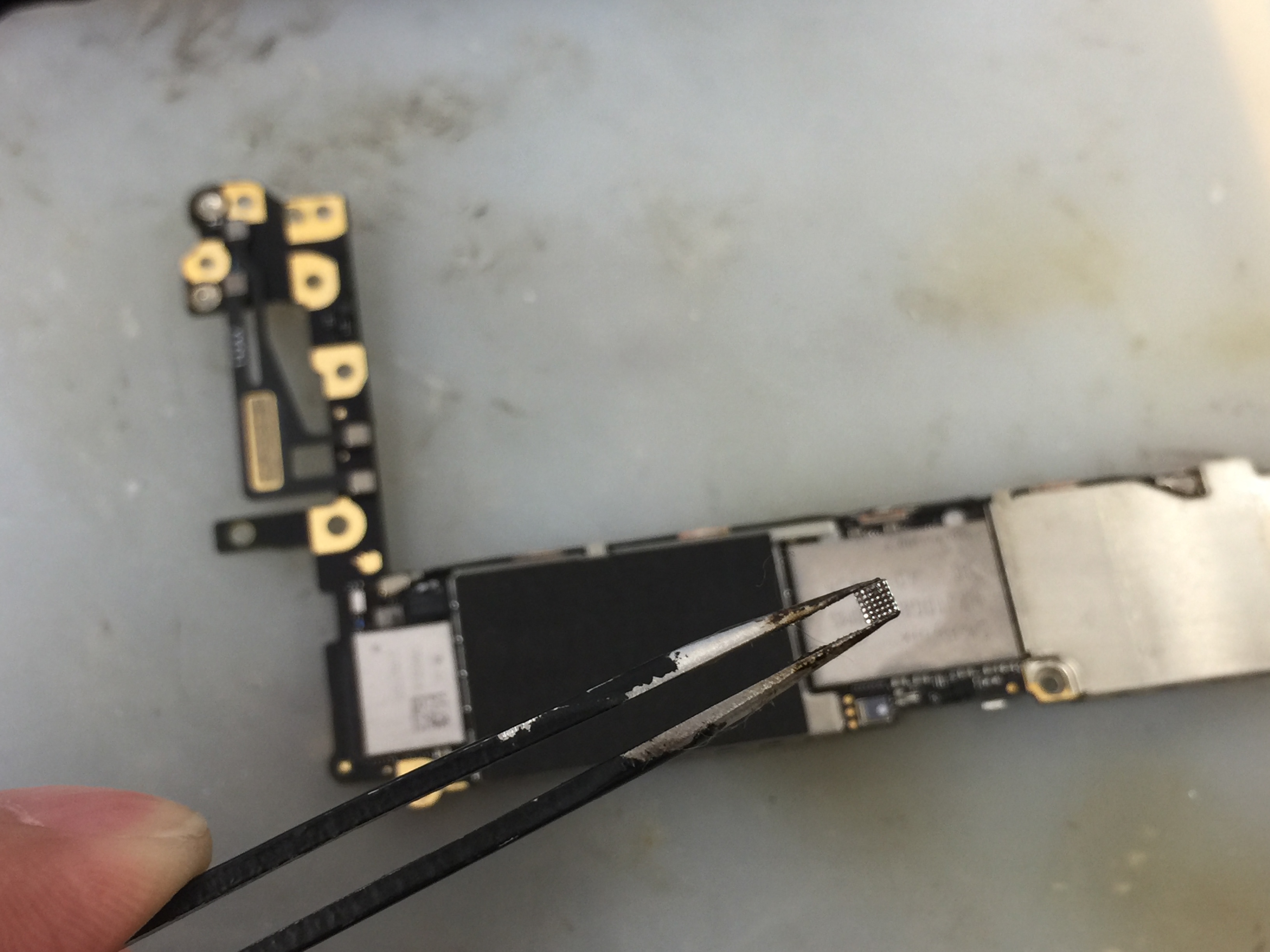 IC自体非常に小さいですが実装面の半田面はさらに小さく非常に難易度の高い修理となります。