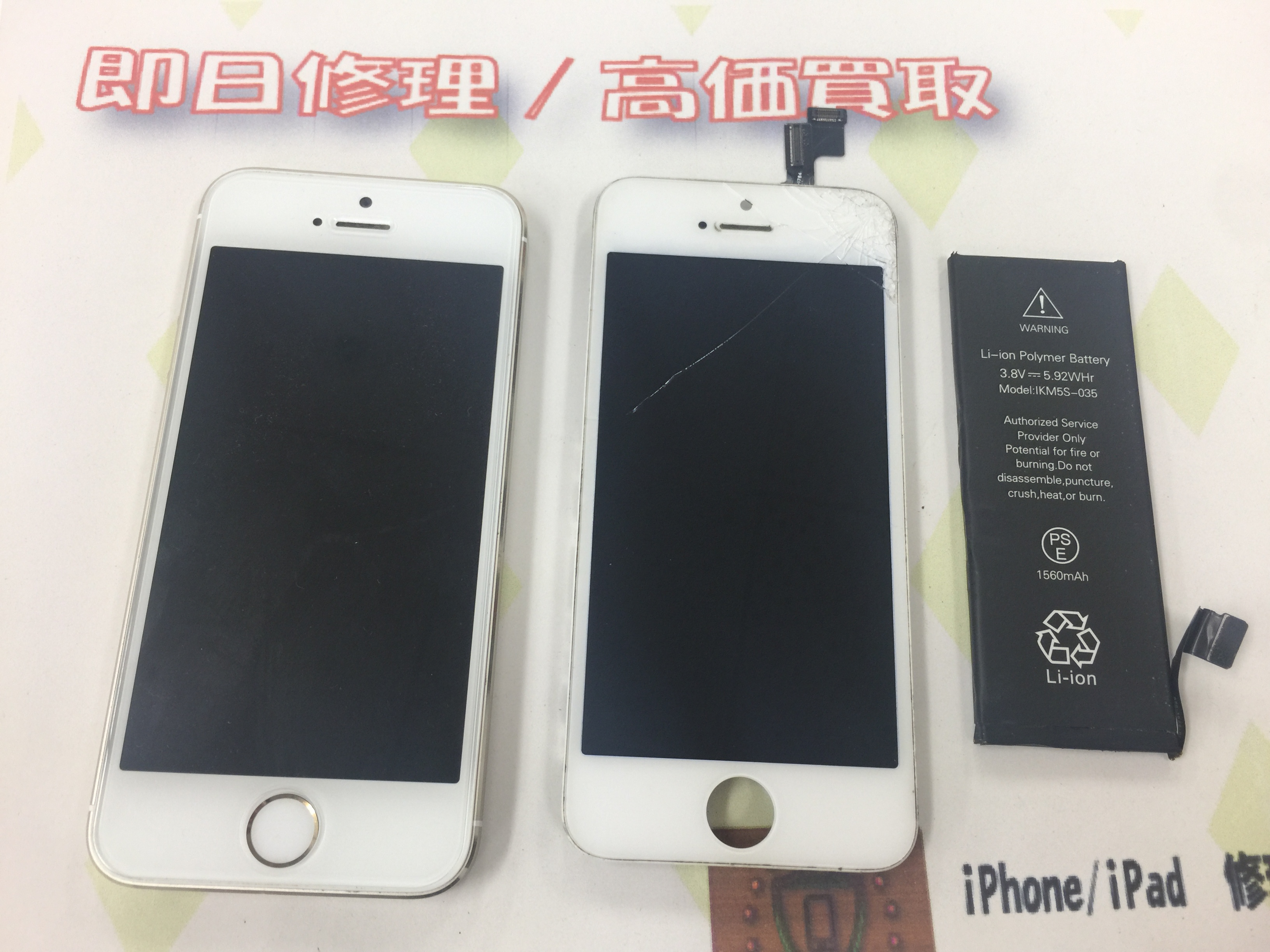 高砂市よりiPhone5s ガラス割れ&タッチ不良、バッテリー交換をご依頼いただきました。