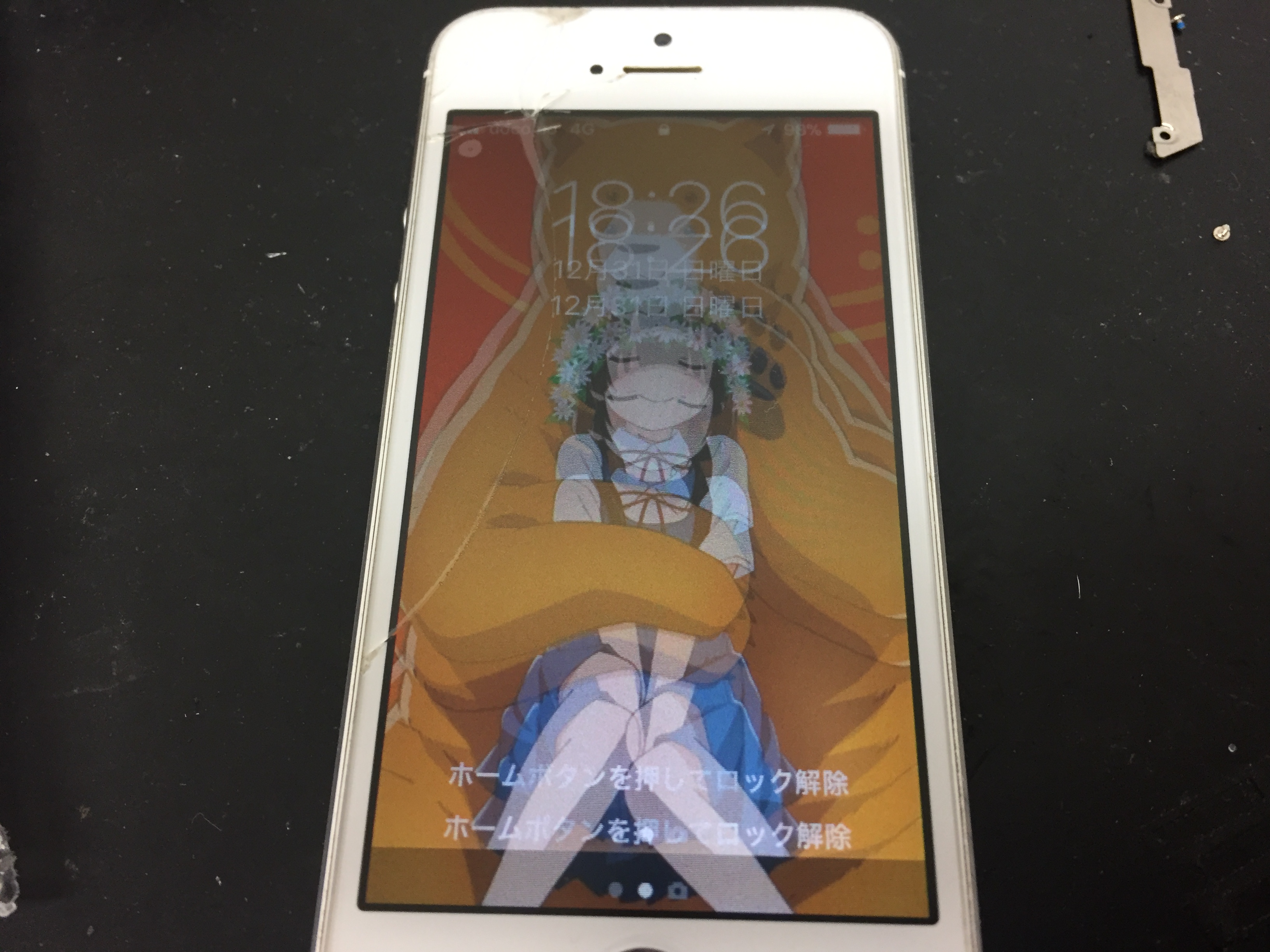 液晶表示がブレブレの状態で操作しにくく、バッテリーも劣化により膨張しておりましたので同時に交換を承りました。