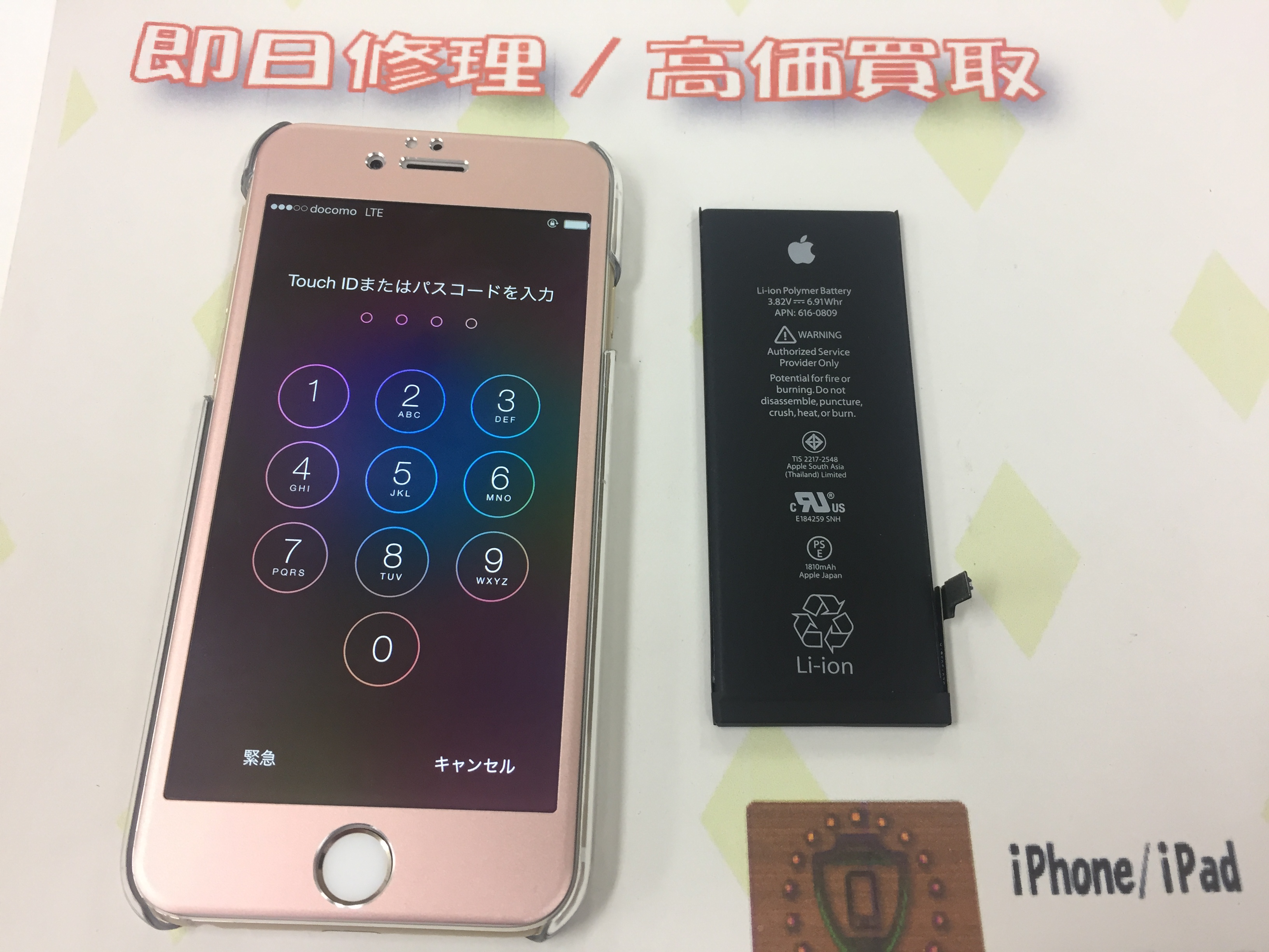 6のほうは以前、他店でバッテリー交換をされた事があるそうですが膨張しておりましたのでお時間20分ほど頂き修理完了です。