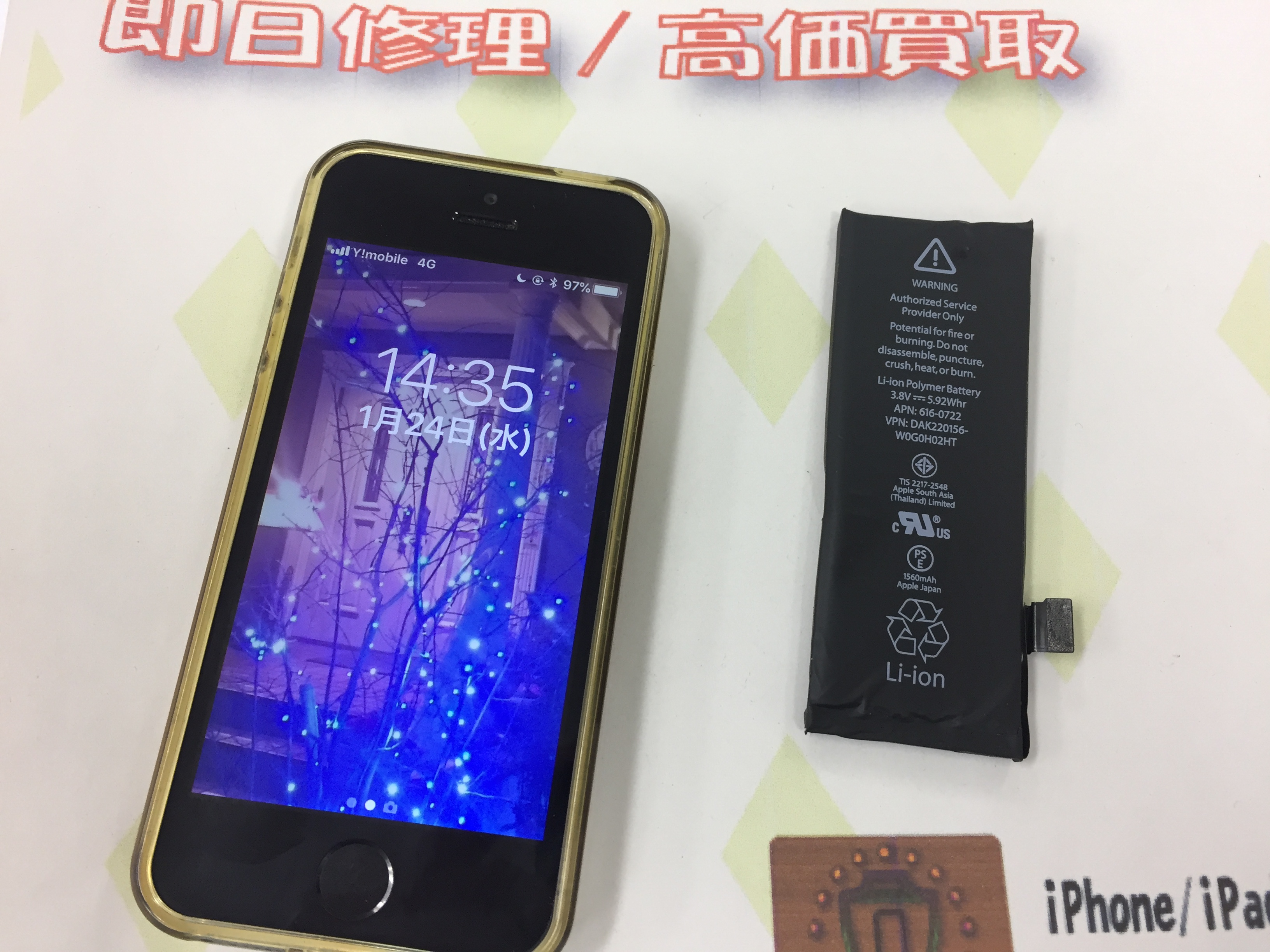 ◆加古川市よりiPhone5s バッテリー交換 -2018 1/24-