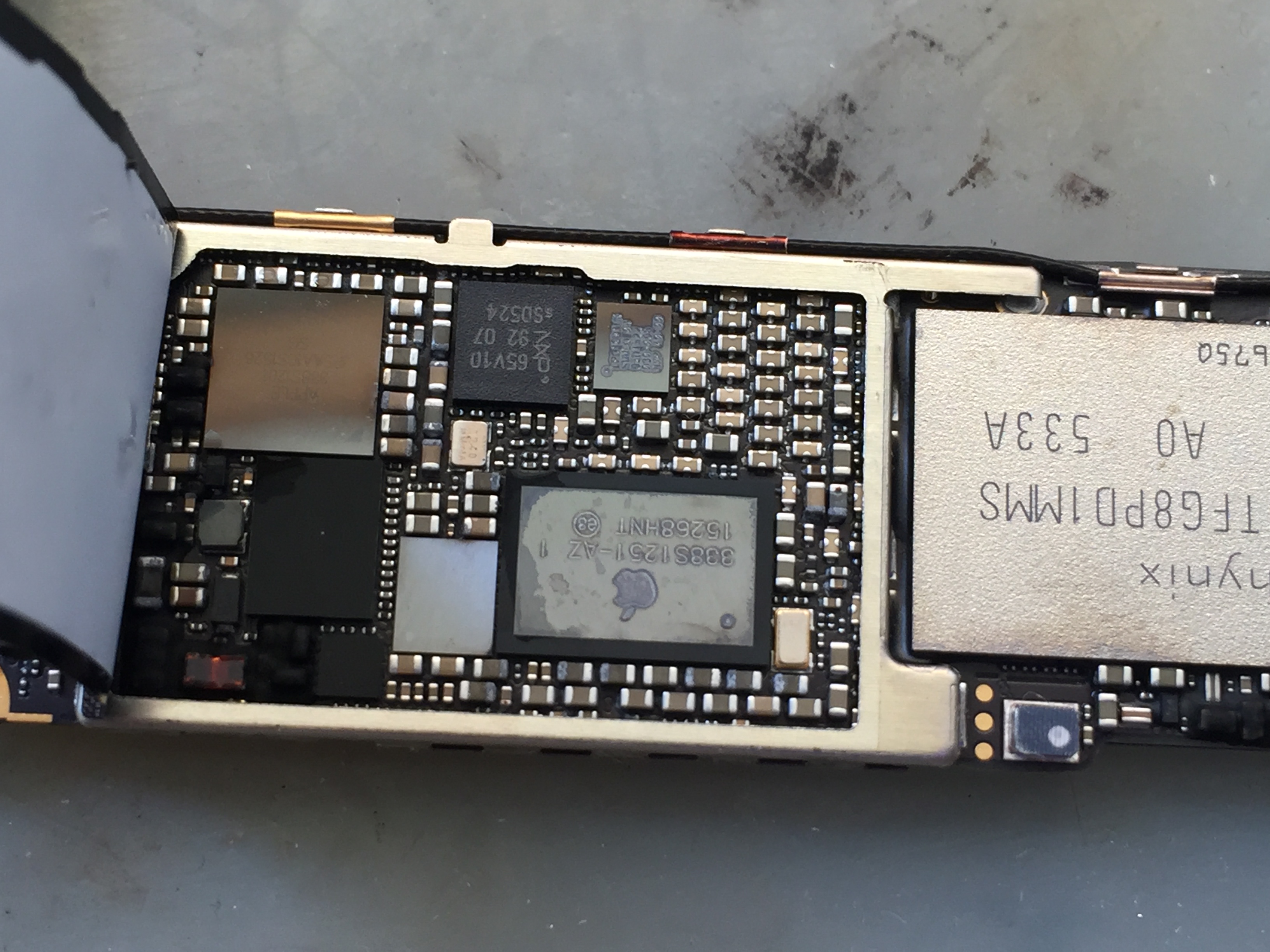 完全にショートはしていないようですが焼けて黒くなっているチップが多数見受けられます。