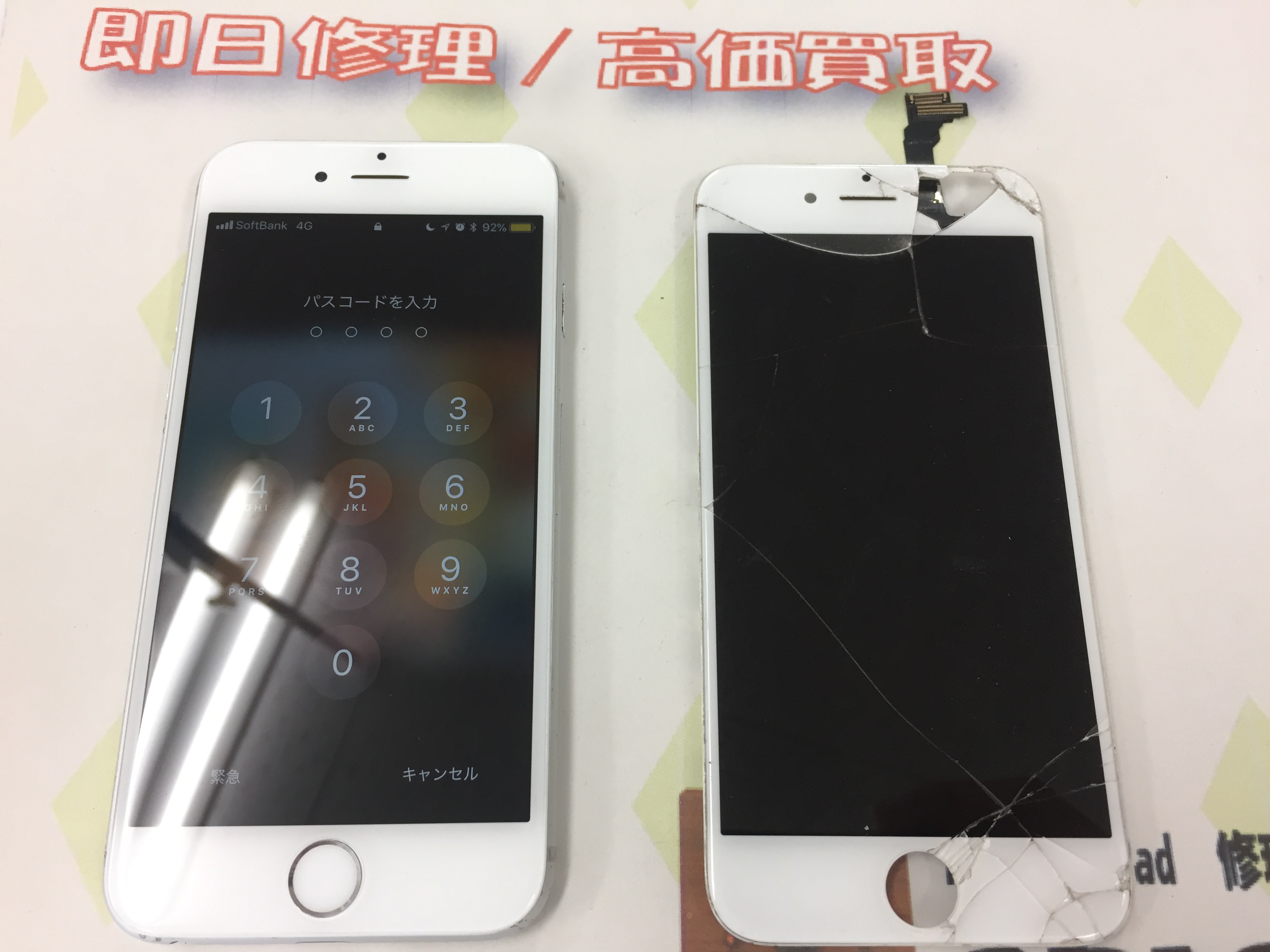 iPhone6 ガラス割れ&液晶不良修理 ¥10,300(クーポン利用500円オフ)