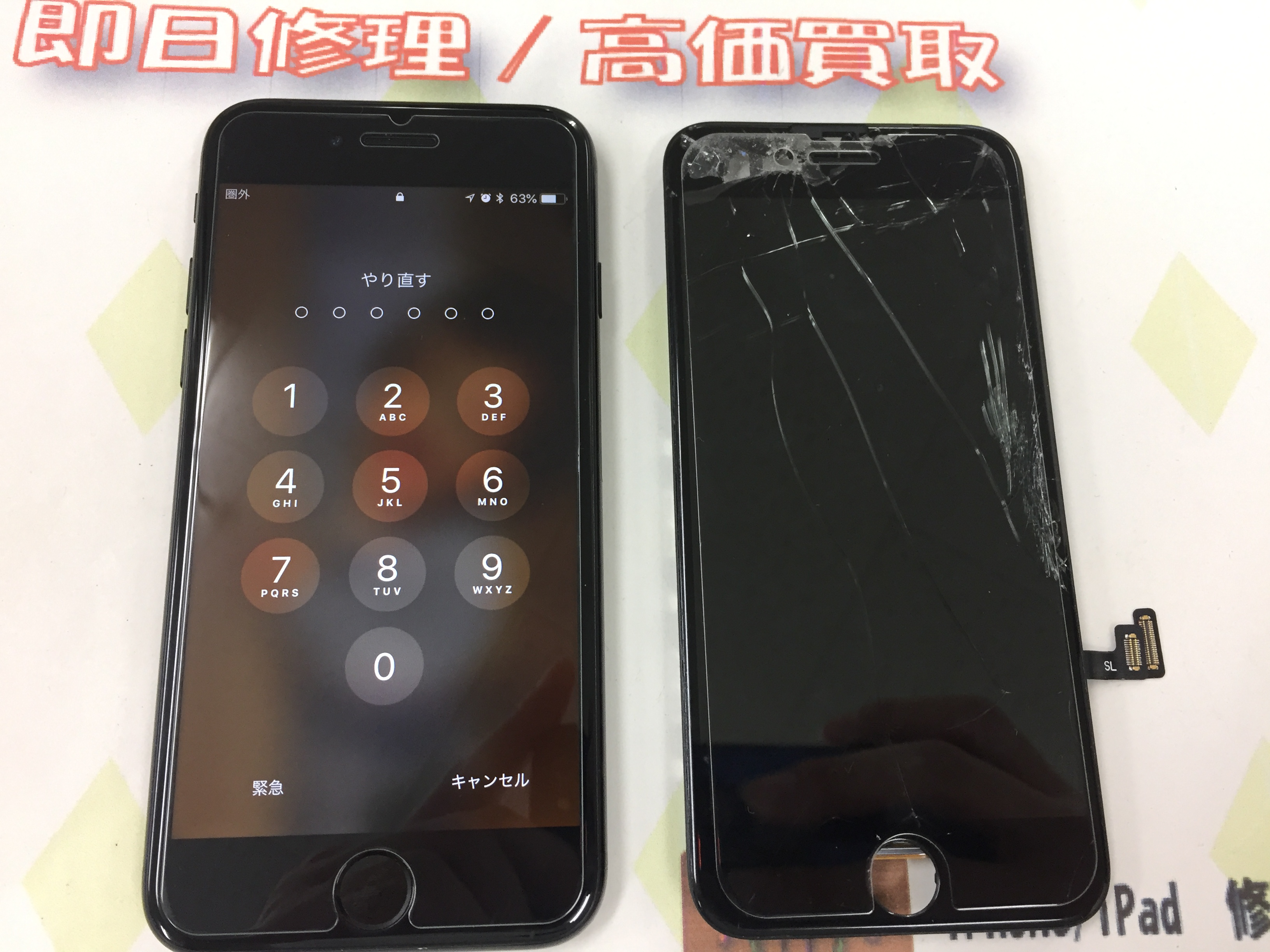 iPhone7 ガラス割れ&液晶不良修理 ¥16,800